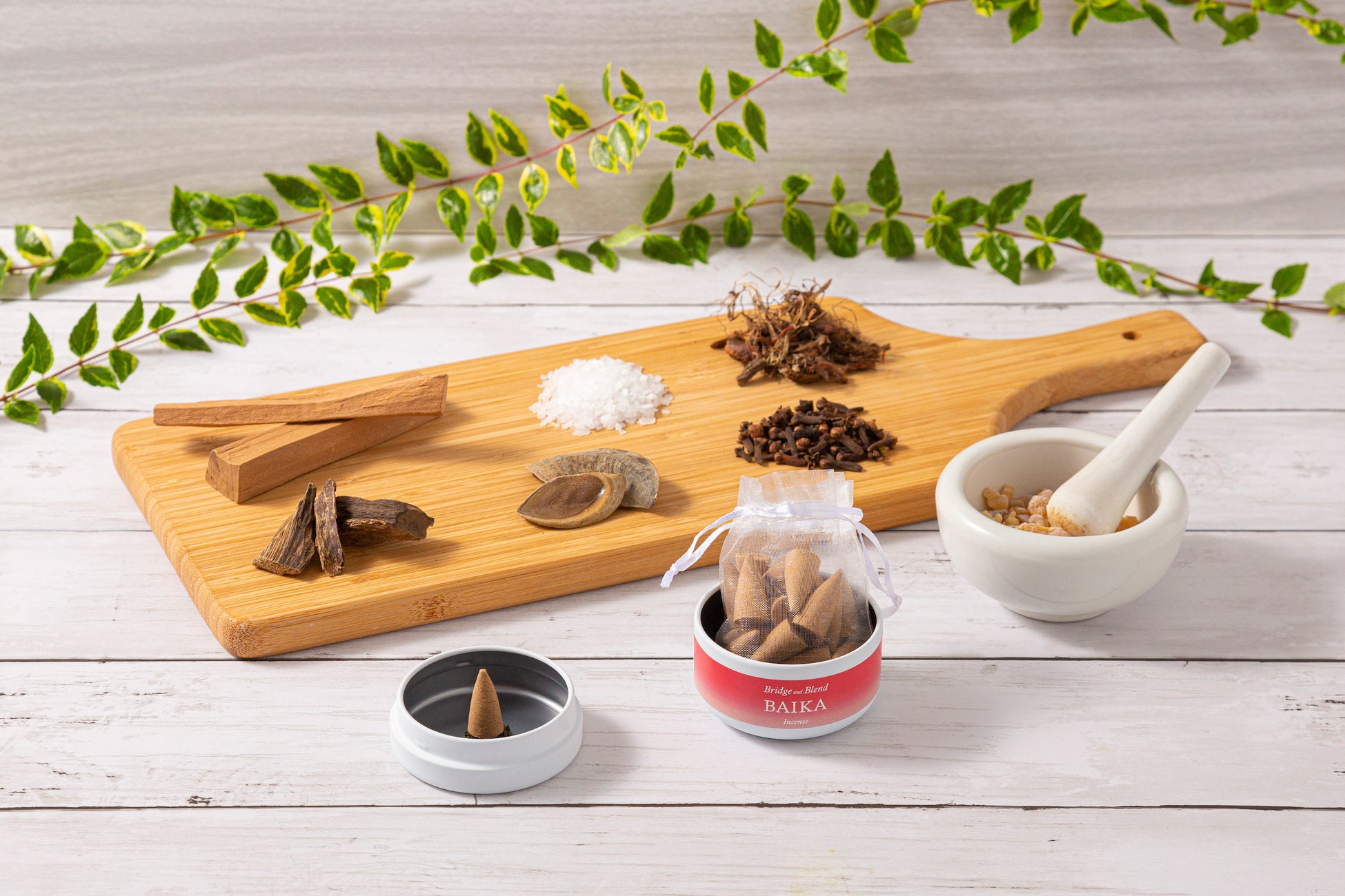 お香ブランド「Bridge and Blend」の始まりは、長い海外生活を経て帰国した創業者が「日本の香りとは何か」と問いを抱いたこと。答えを探求する中で、源氏物語にも登場するこれらの香りと、自由に香りを嗜む文化に触れ、伝統的な日本の香りを次の1000年へ伝えたいと考えたことが開発のきっかけです。
