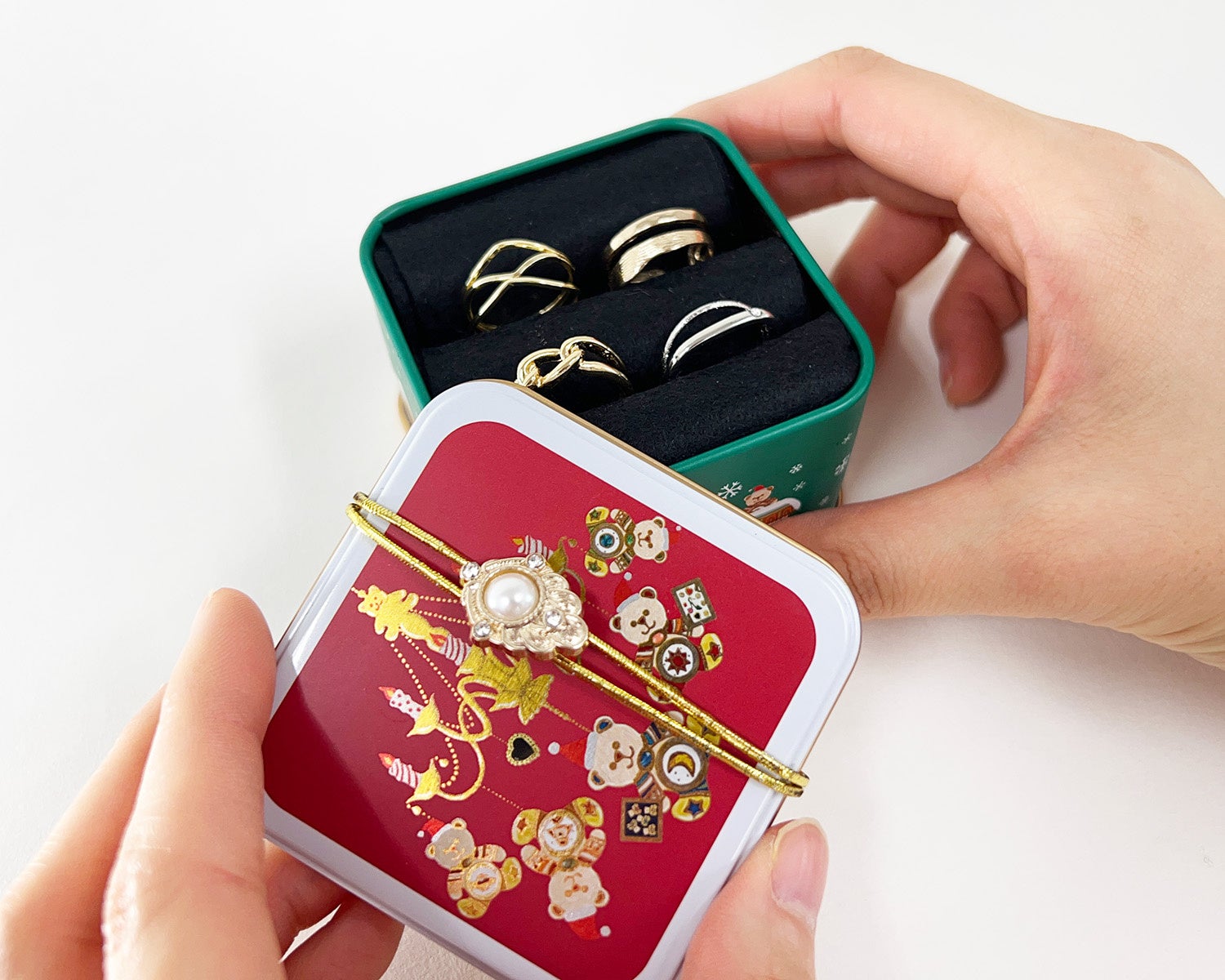 シャンデリアくま缶は小さくて無くしやすい物を保護しながら持ち歩くことができます。