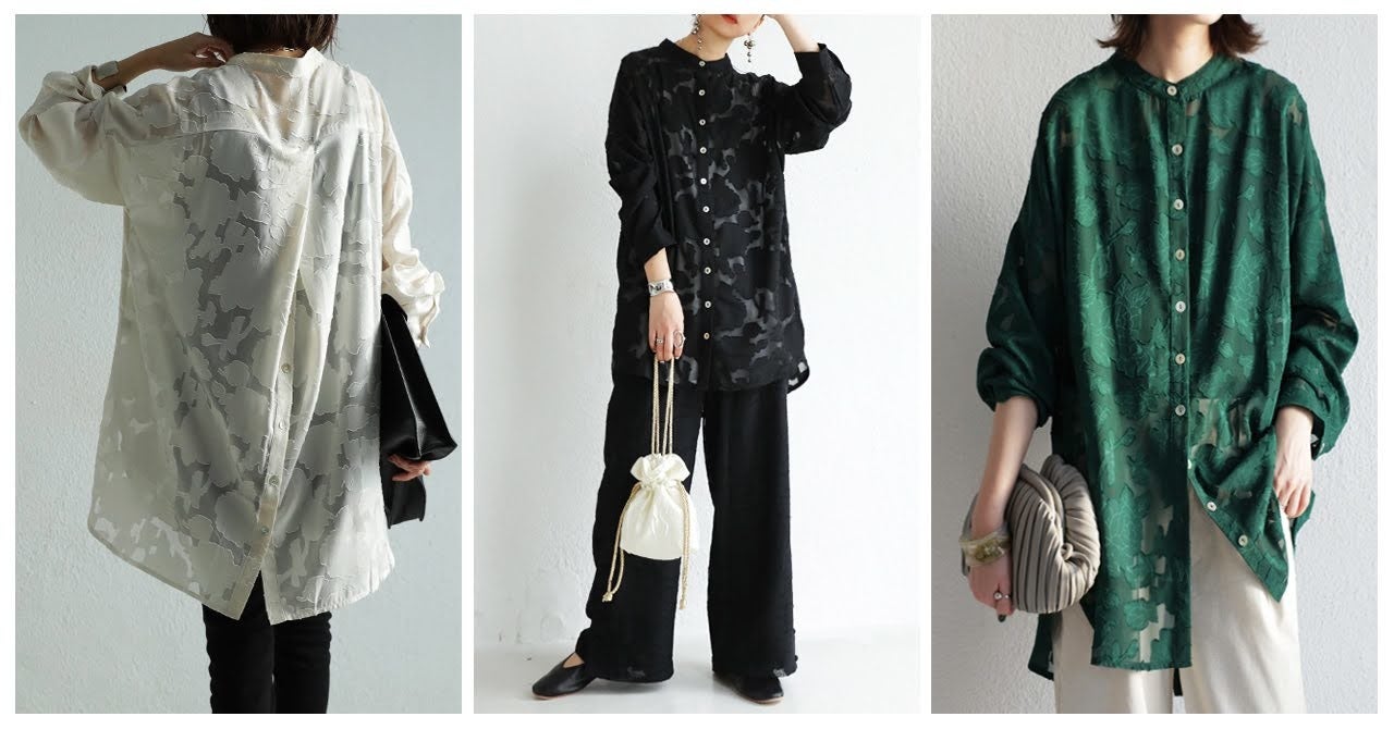 程よい透け感で上品な雰囲気を醸し出す、花柄シアーシャツ。