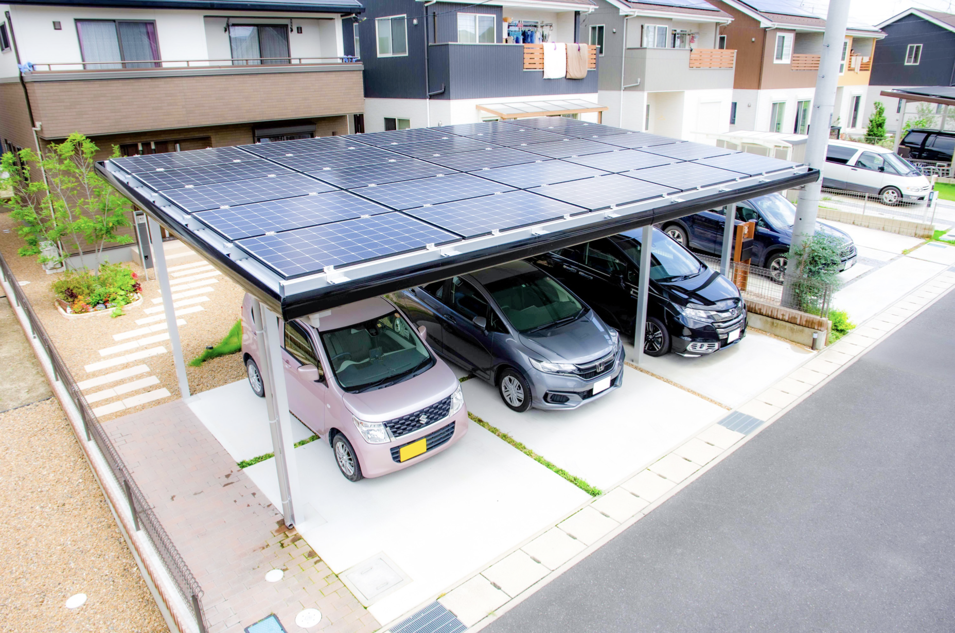 ソーラーカーポートとは、カーポートの屋根の部分に太陽光パネルを設置した車庫のことを指します。太陽光パネルは、住宅の屋根に設置されることが多いですが、実はカーポートにも設置して太陽光発電ができます。ソーラーカーポートを設置することで、駐車スペースのデッドスペースを有効活用し、電気代の削減、災害時の備え、環境問題の改善などのメリットを得ることができます。