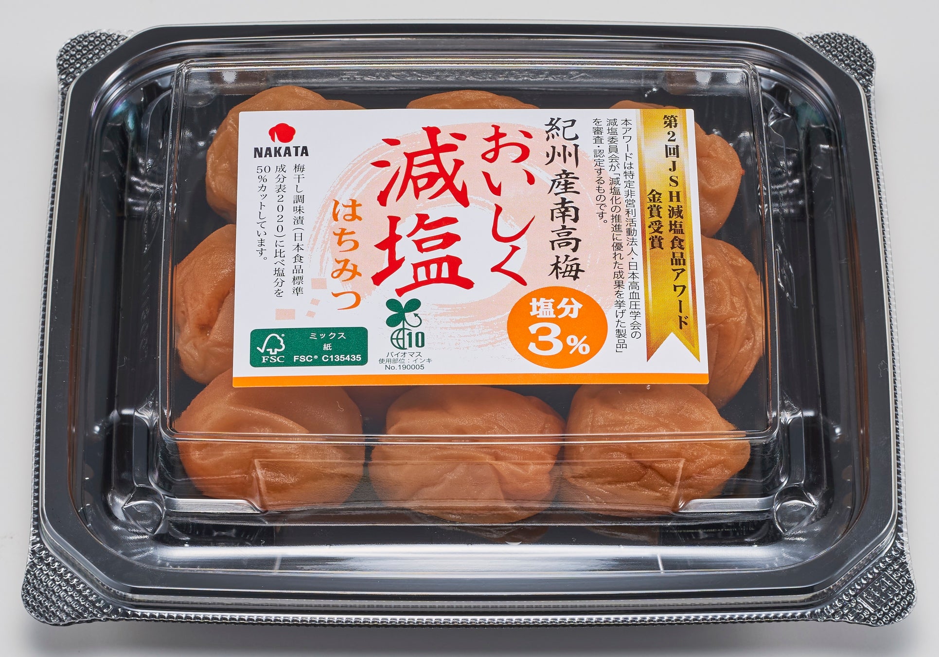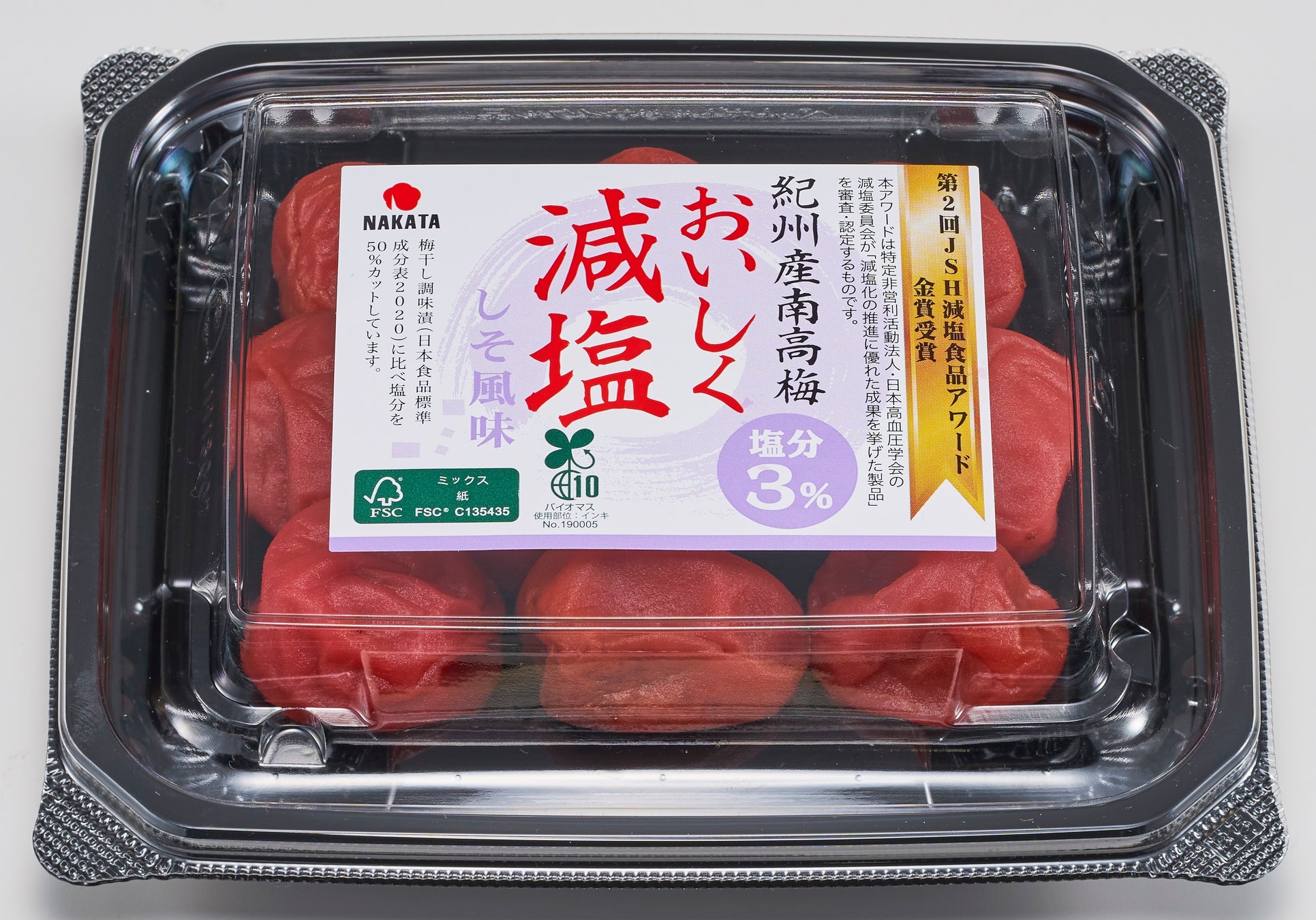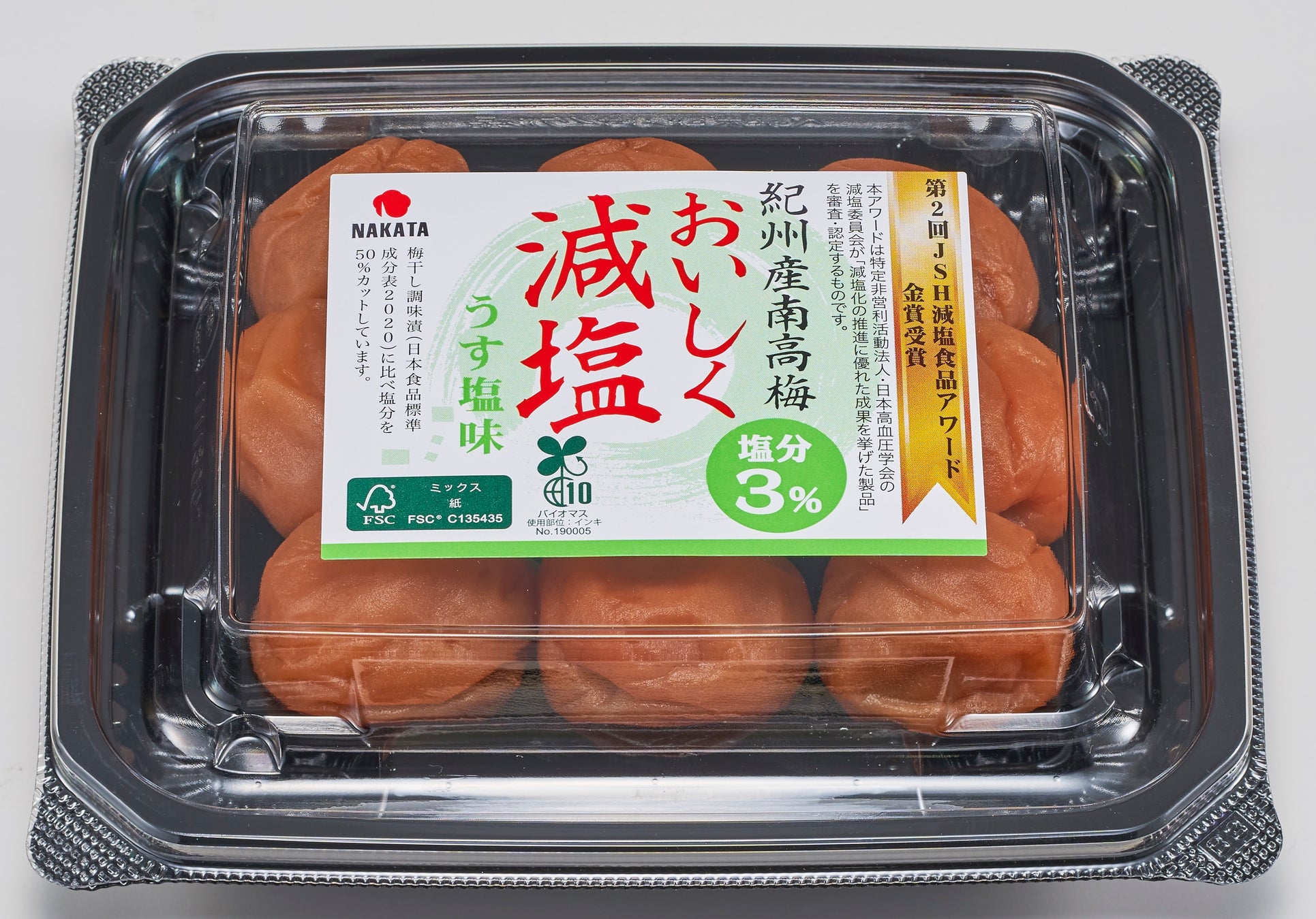 食塩の取り過ぎは高血圧を引き起こし、脳血管疾患や心疾患などの原因になるため、減塩はその予防や管理に効果があると言われています。そうした中で梅干しは、塩分の高い象徴的な食品として取り扱われており、減塩化への取り組みは長年にわたる私どもの大きな課題でした。特に梅干し愛好者の方は適度な塩味を好む傾向にあり減塩した梅干しは美味しくないとの意見が多く、市場に定着することはありませんでした。このような背景の中2007年よりおいしい減塩梅干しの研究・開発と積極的な市場導入に取り組んでまいりました。