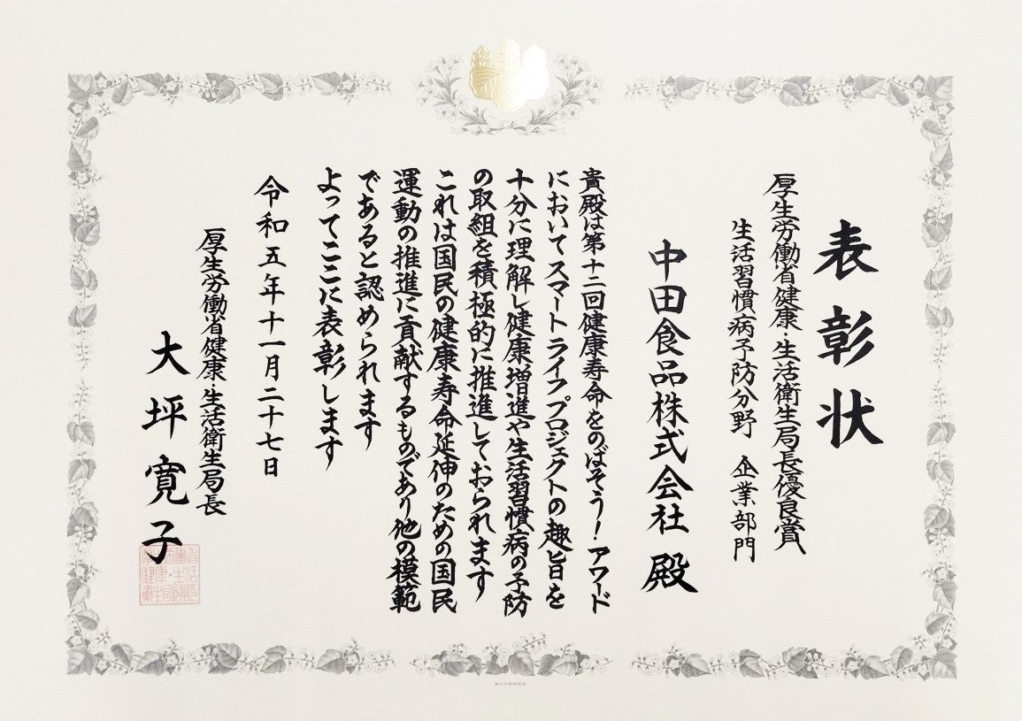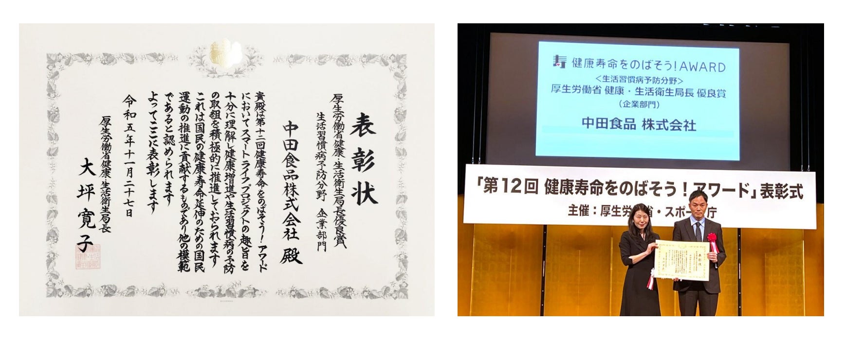 厚生労働省(スマート・ライフ・プロジェクト)・スポーツ庁主催「第12回 健康寿命をのばそう!アワード」で厚生労働省健康・生活衛生局長優良賞を受賞
