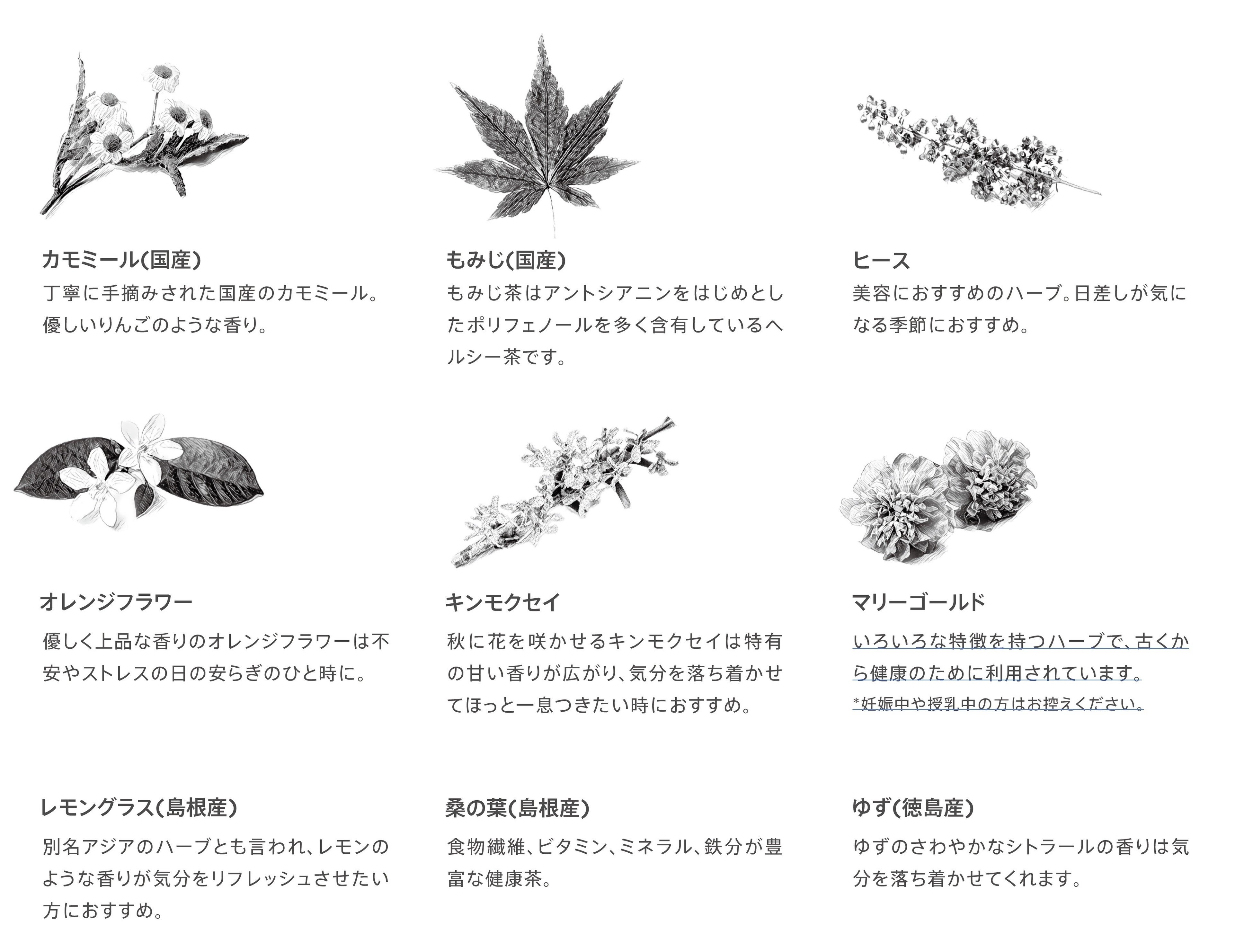 ノンカフェイン・無添加の和漢ハーブティーです。
