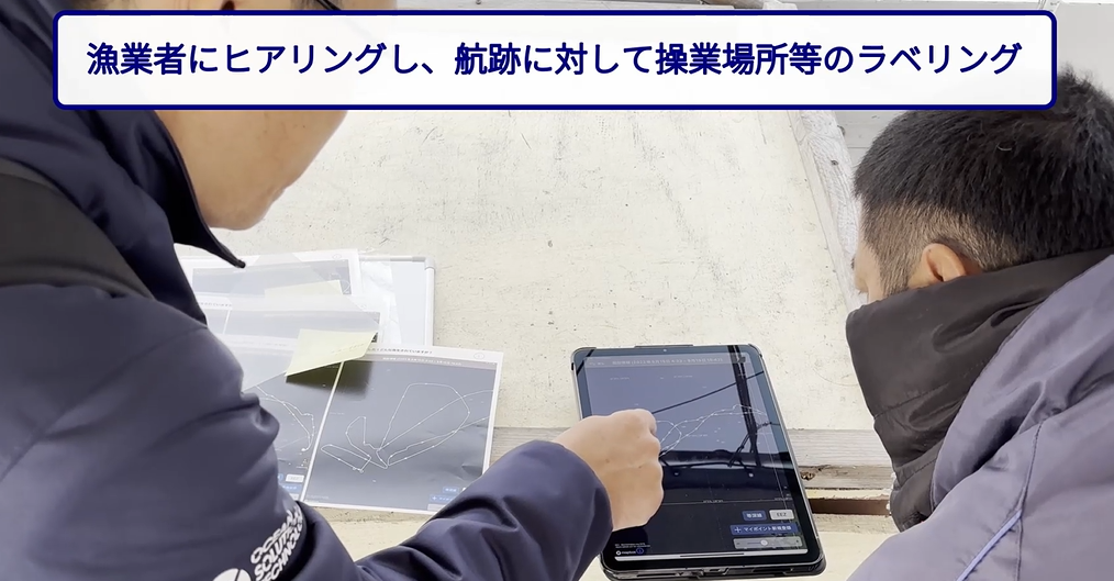 〇 位置情報の取得と、漁業者へのヒアリングによる航跡に対する操業場所等のラベリング