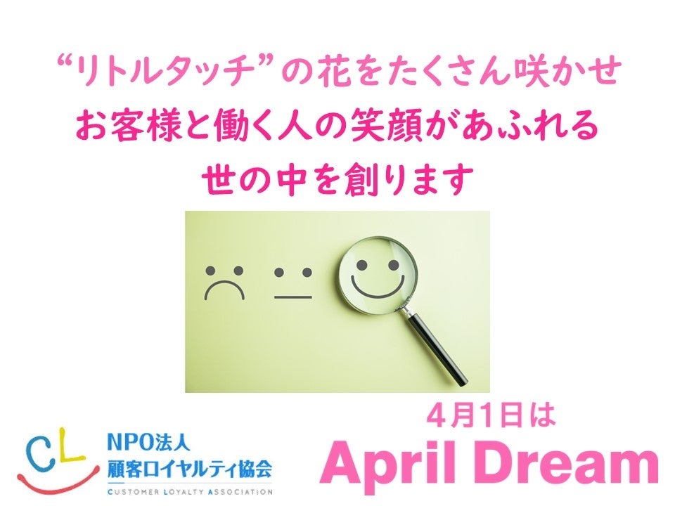 当協会は、4月1日を夢を発信する日にしようとするApril Dreamに賛同しています。このプレスリリースは「NPO法人顧客ロイヤルティ協会」の夢です。