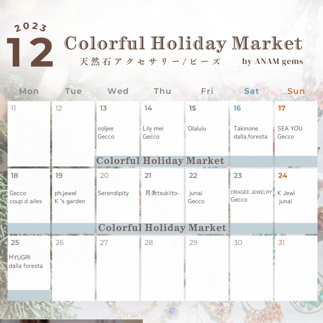 選ばれし天然石ハンドメイドアクセサリーが池袋に集結「Colorful Holiday Market(カラフルホリデーマーケット) by アナムジェムズ」POP UP開催