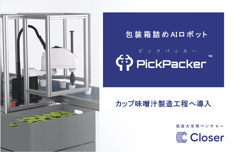 包装ロボット「PickPacker™」を主力製品として開発しており、カップ味噌汁の製造工程への導入に向けた開発が直近の主な事例です。