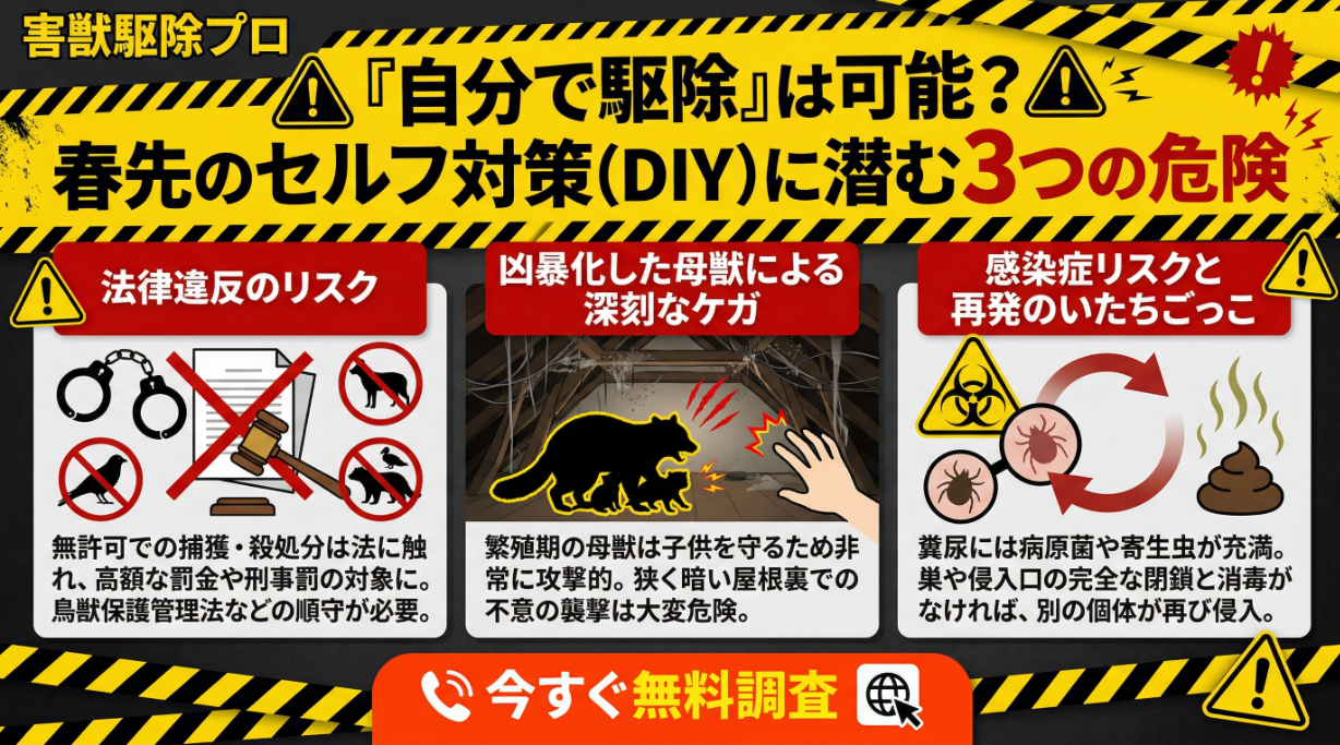 ■ 「自分で駆除」は可能? 春先のセルフ対策(DIY)に潜む3つの危険