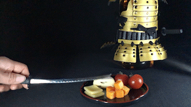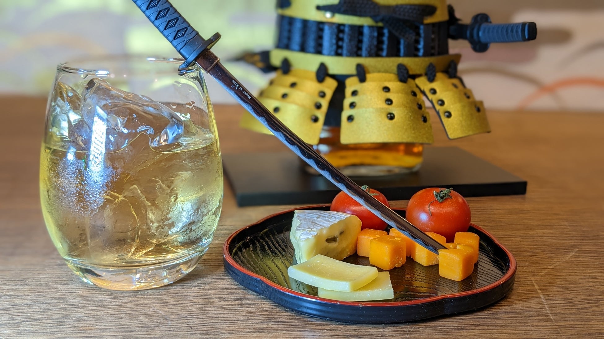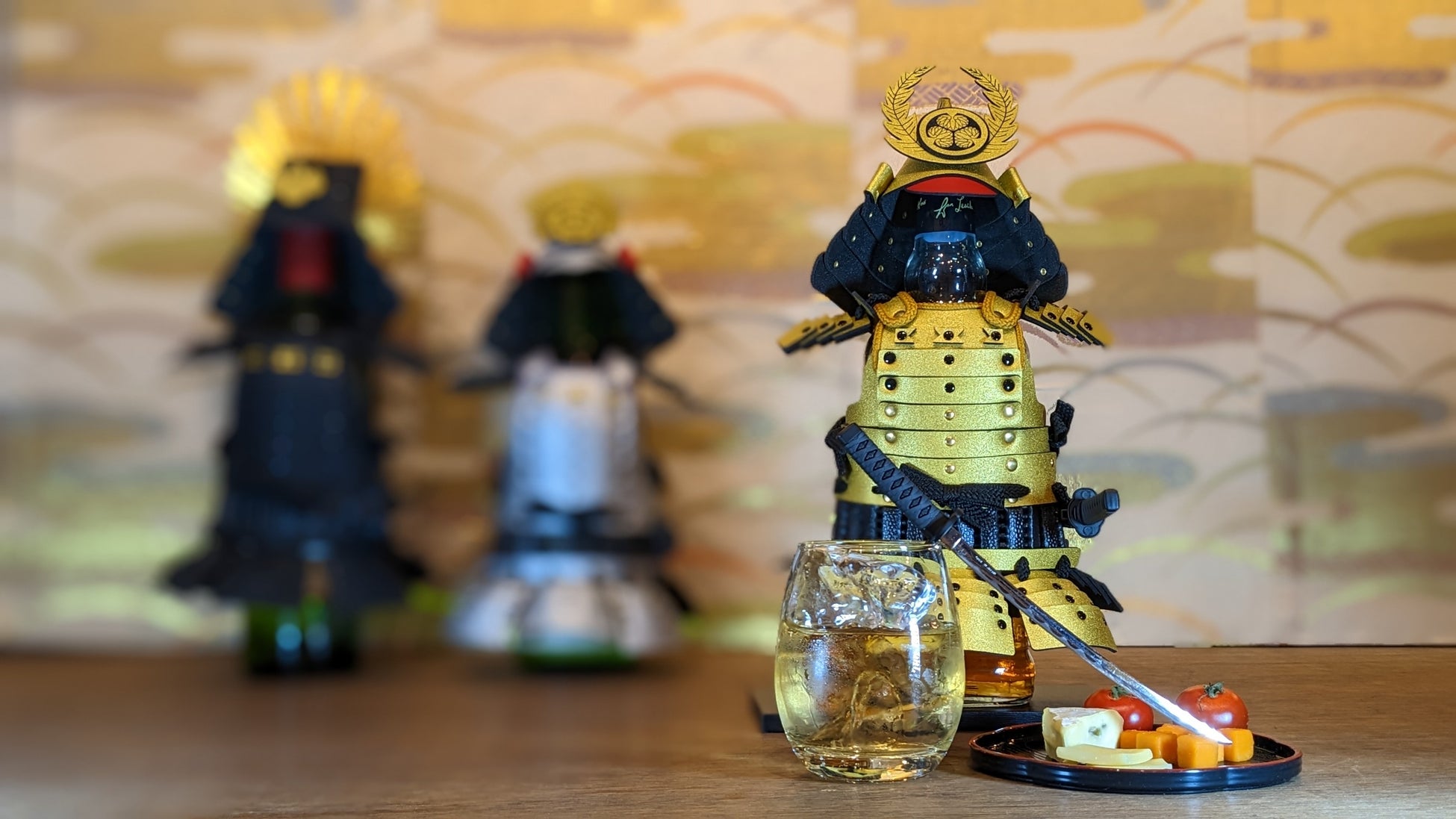 戦国武将に大切に守られたボトルで、お酒を注ぎ、その刀でおつまみを斬る、純国産の新たな歴史エンターテイメントです。