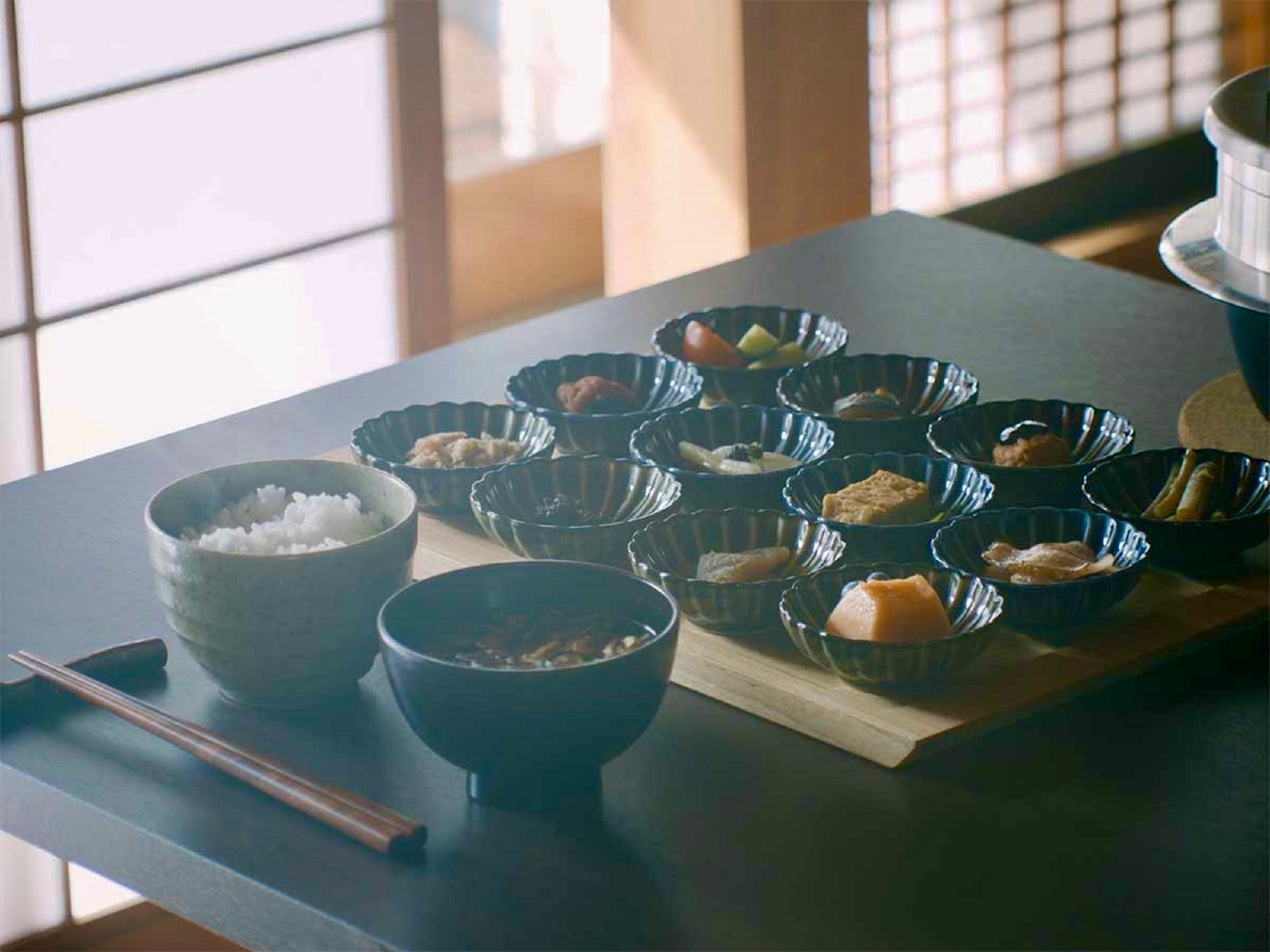 ・ご朝食 釜炊きご飯と秩父産川魚や地元野菜の12種類の小鉢