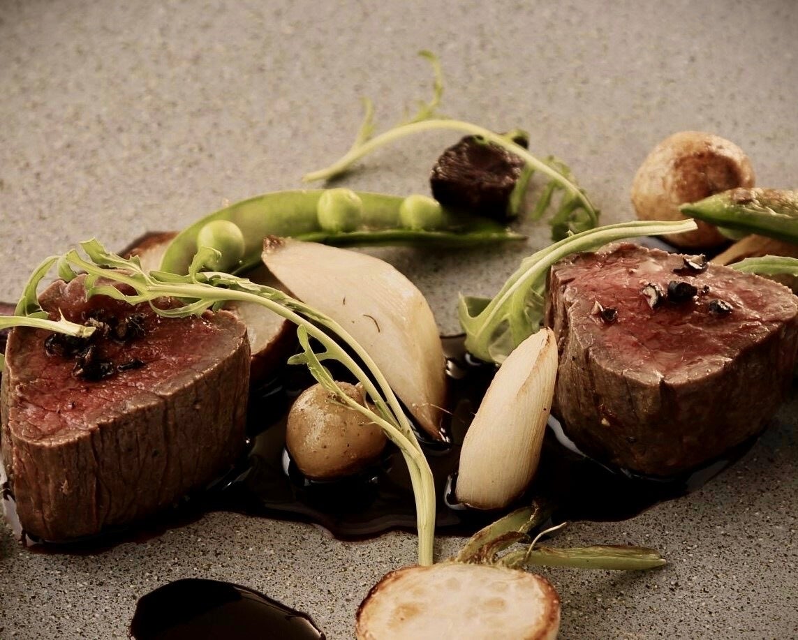 秩父産の鹿肉をシンプルに味わえるロティに仕上げ、鹿肉には定番の胡椒をきかせたソース(ポワブラードソース)と合わせました。旬の秩父産野菜のグリルとお楽しみいただきます。