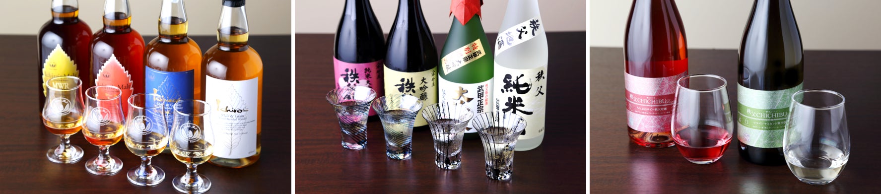 秩父の大人気ウイスキー「イチローズモルト」を3種類飲み比べいただけます。