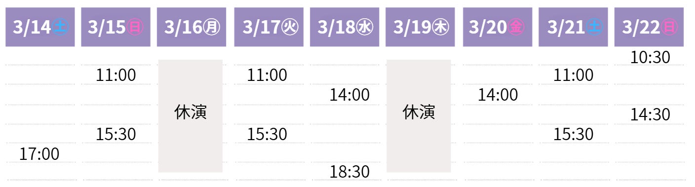 公演期間 :2026年3月14日(土)~3月22日(日) 全12回公演 ※休演日あり
