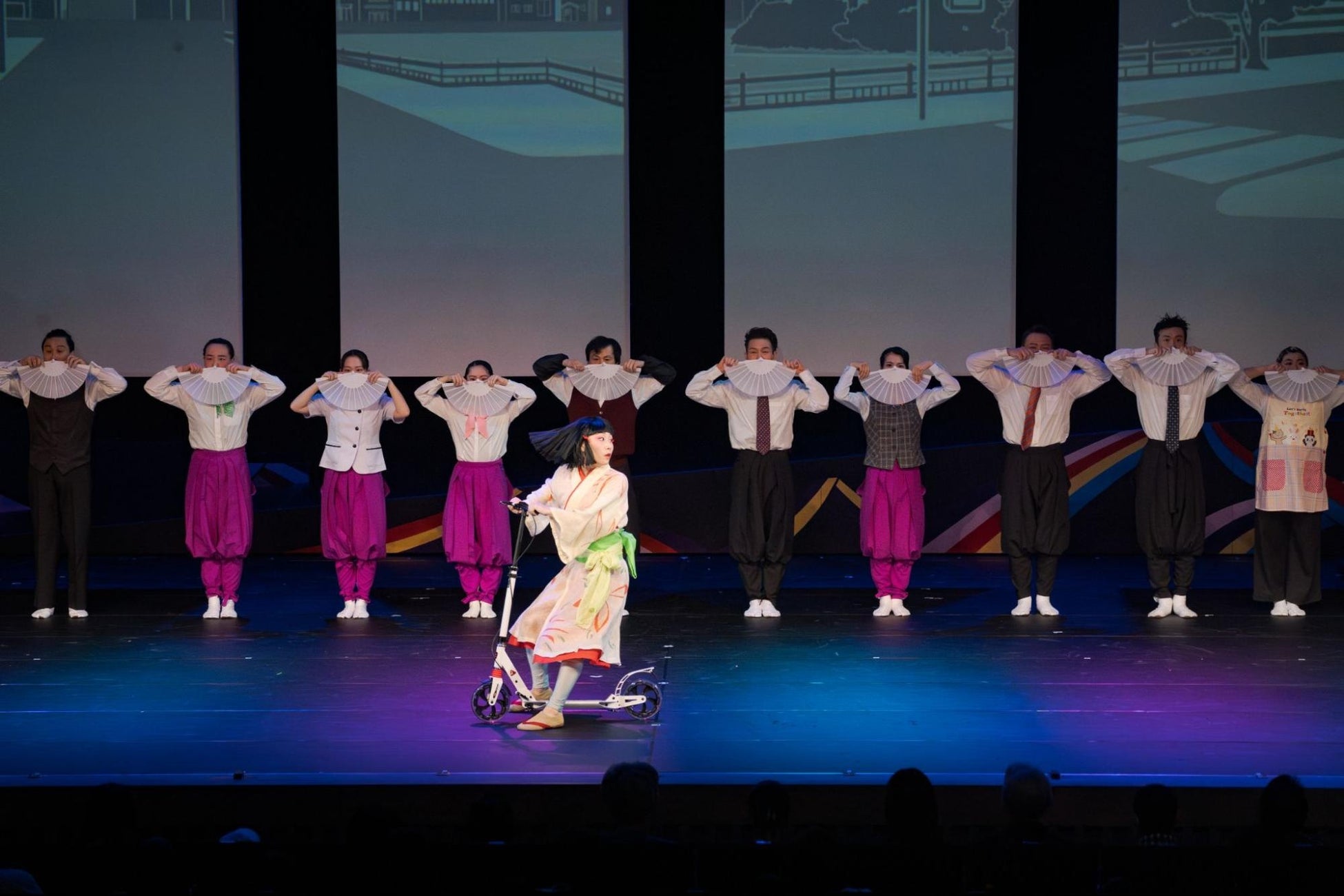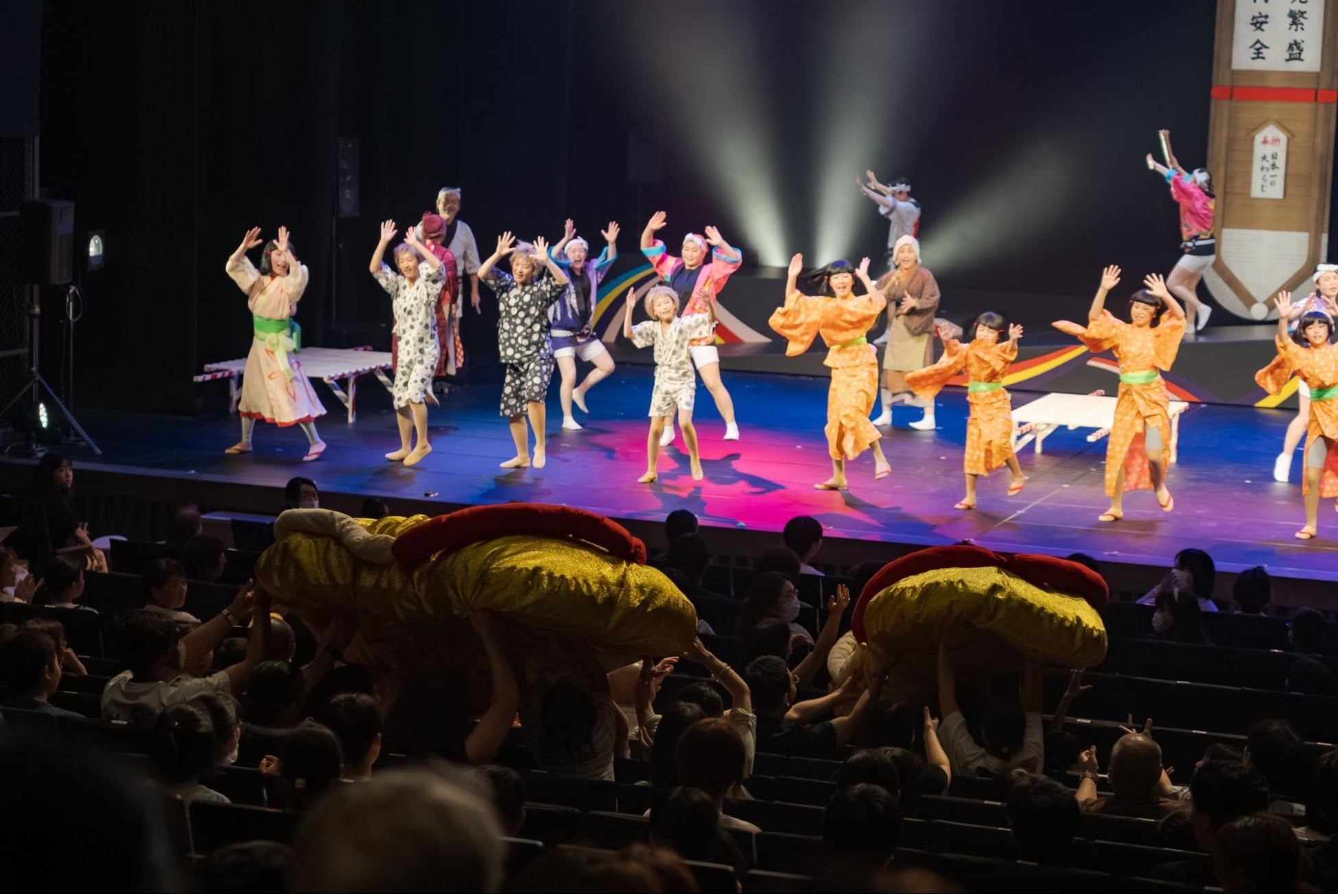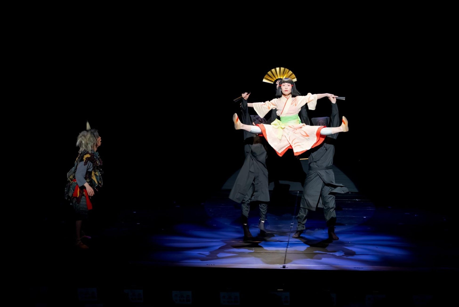 祭シアターは、言葉(セリフ)を用いないパフォーマンスです。若い鬼とオハナが出会い、恋に落ちるドラマチックなストーリーで、観る人を物語の世界に引き込みます。国や世代を超えて誰もが楽しめる公演です。