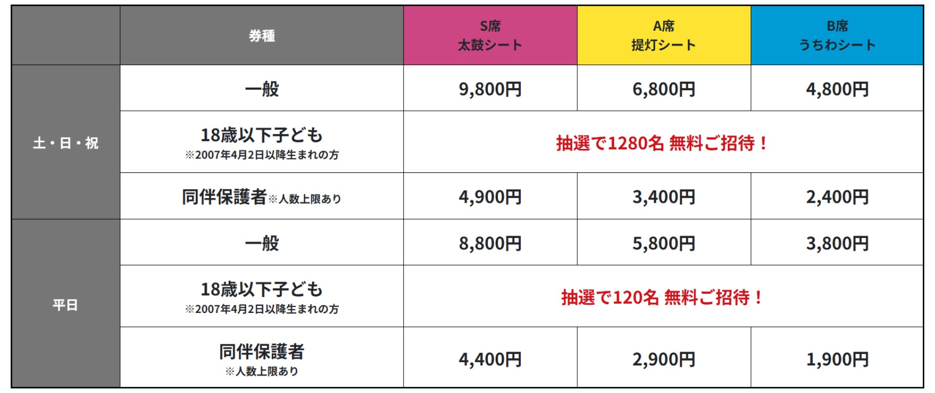 ◆一般・子ども無料招待・同伴保護者半額先行抽選