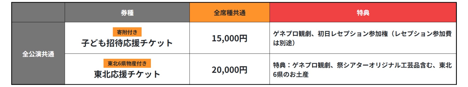 ※特典のゲネプロ(最終リハーサル)観劇の席種は選べません。ゲネプロは3月14日(土)11:00開演予定です。ゲネプロ開演時間は変更になる場合がございます。ご入場時各VIPチケットをご提示ください。