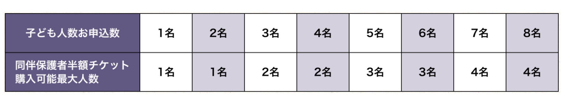 ※同伴保護者の半額補助チケット購入枚数は条件があります。