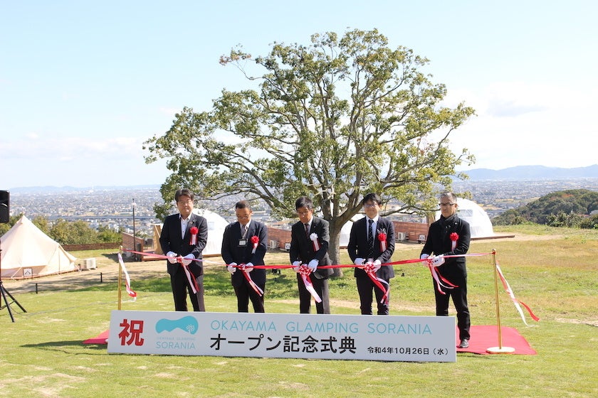 当社はOKAYAMA GLAMPING SORANIA(おかやまグランピングソラニア)のオープンを記念して、2022年10月26日(水)にはオープニングセレモニーを開催しました。オープニングセレモニーではテープカットを実施し、株式会社温泉道場山﨑寿樹様をはじめ、オープンまでにご協力をいただいた方々やインフルエンサーの方々にもご参加をいただきました。