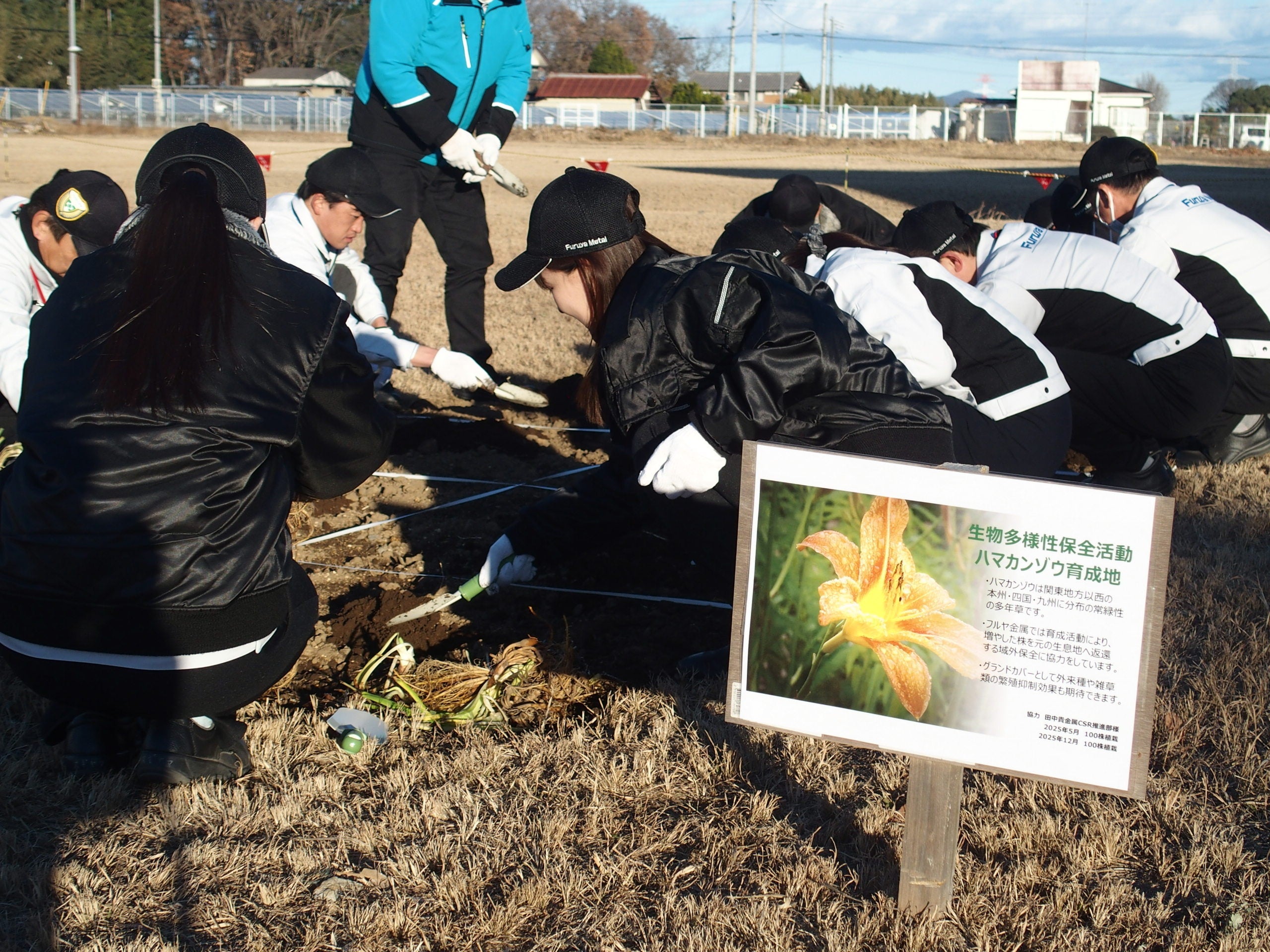 株式会社フルヤ金属(本社:東京都豊島区、社長:古屋堯民、以下「フルヤ金属」)は、2025年12月15日(月)に茨城県筑西市のつくば工場にて、ハマカンゾウ110株の追加植栽を実施しました。本追加植栽は、フルヤ金属のサスティナビリティ活動の一環として、NPO法人小網代野外活動調整会議(神奈川県三浦市、代表:岸由二、以下「小網代野外活動調整会議」)が行う「小網代の森ハマカンゾウプロジェクト」へ賛同し、実施している生物多様性の保全に向けた活動です。