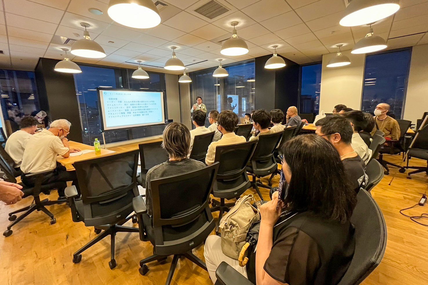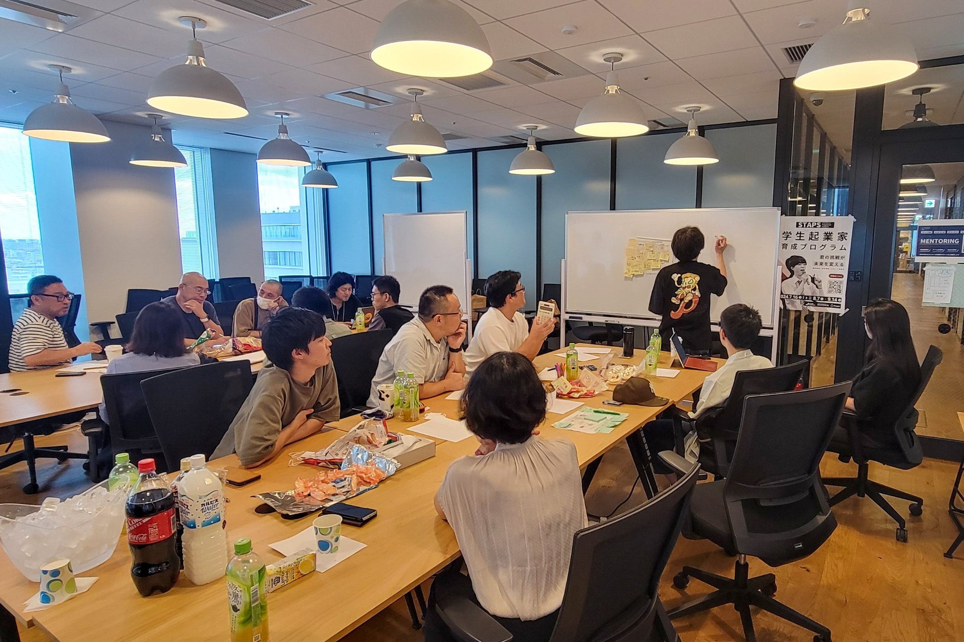 研修の最後には、3チームがそれぞれの課題と解決策について発表を行いました。審査は、物流会社の代表取締役社長と株式会社スペースCOOの2名が担当し、厳正に進められました。
