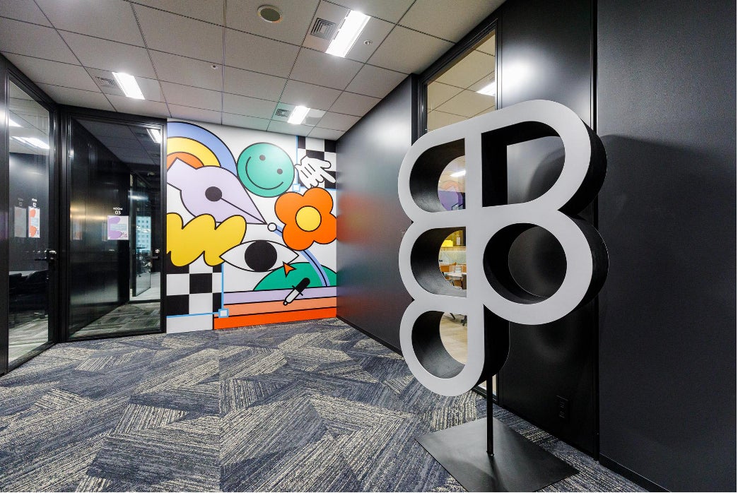 ◇ エントランスのデザインパネル:Figmaらしい遊び心が溢れるデザインは、本社のブランディングチームが制作