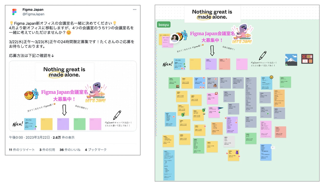 ・募集時のツイートと多くのファンコミュニティからアイディアが寄せられたFigjam