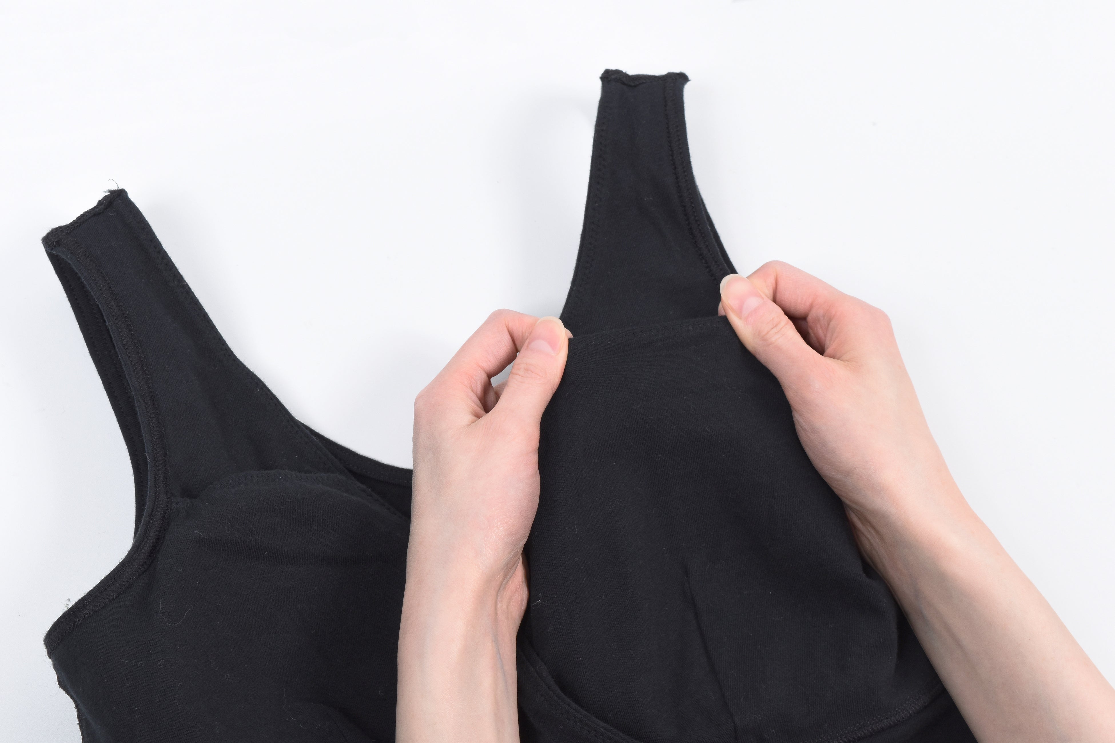 もし襟元を引っ張られても、シンプルな黒のタンクトップのような見え方にしています。
