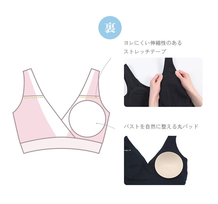 ・高い伸縮性でバストの変化にも対応し、しめつけ感なくラクな着け心地