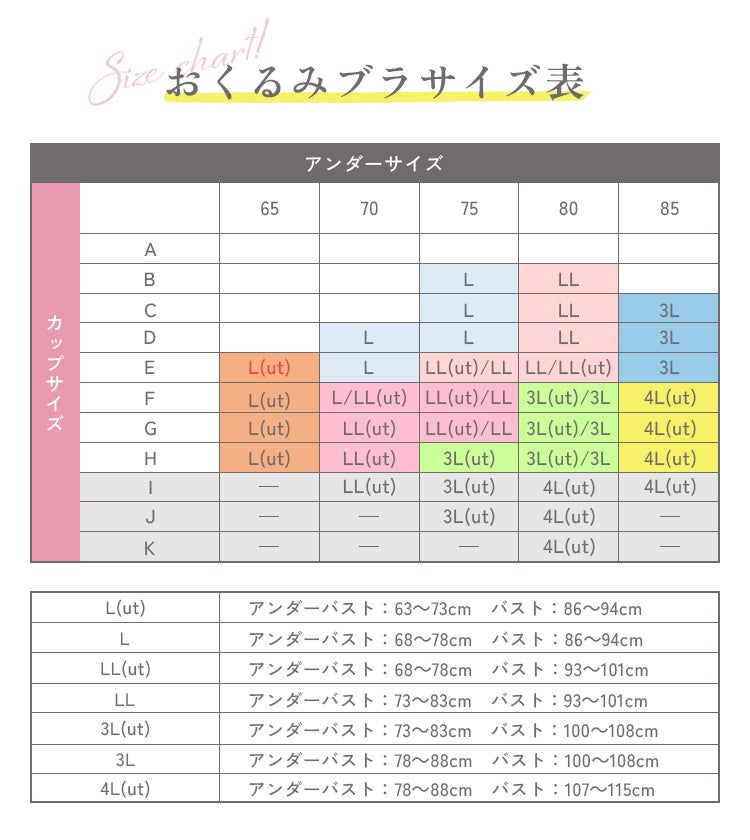 3L(ut) :アンダー73-83cm、バスト100-108cm