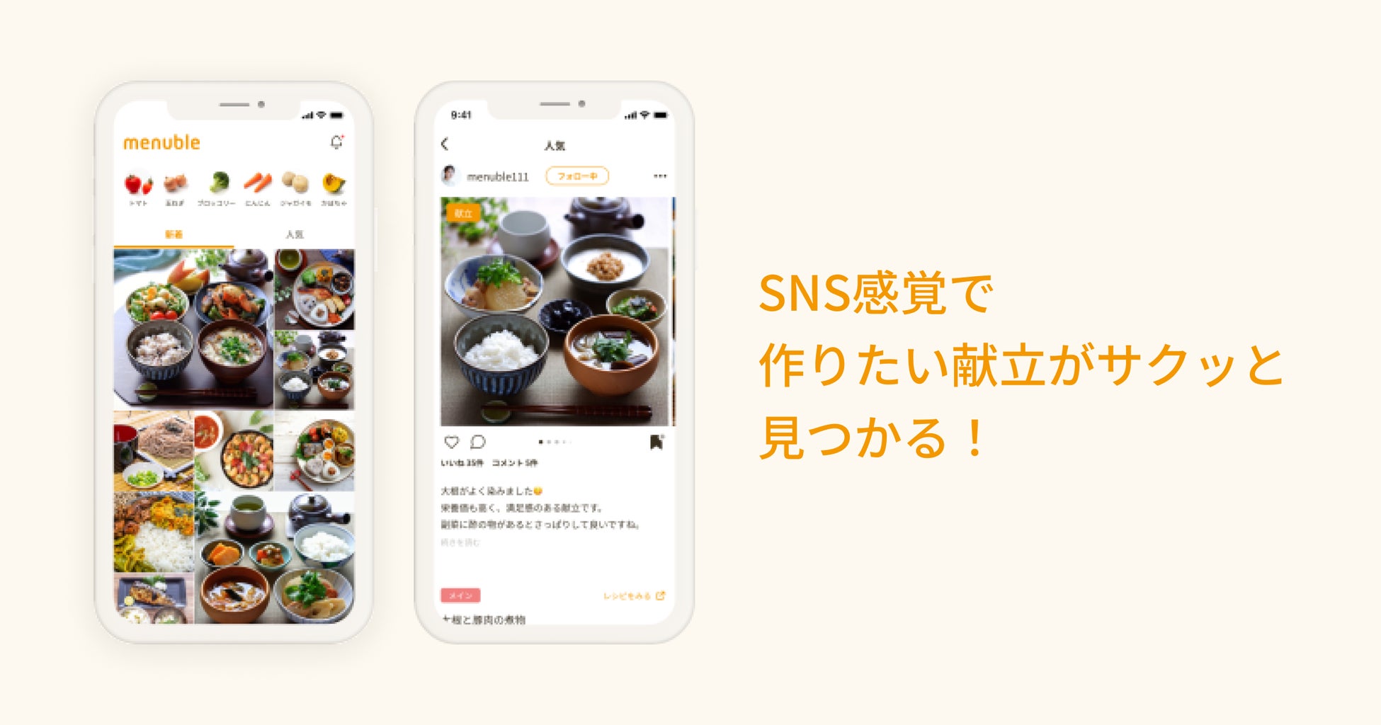 menubleは、SNS感覚で色んな献立が簡単に見つかる新しい献立特化型サービスです。
