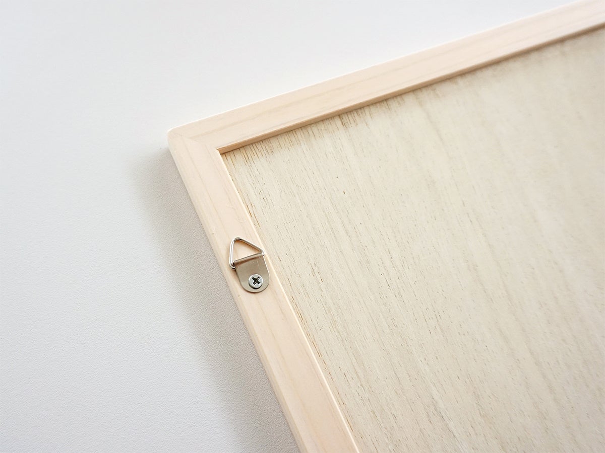 壁掛け用の三角フックとネジを2セット添付しています。使う場所に応じてドライバーなどで背面に取り付けてください。※紐は付属しません
