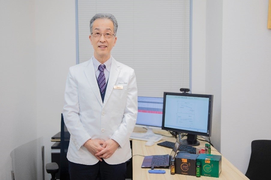 さらに抗加齢治療を専門とする医療法人美健会 ルネスクリニック日本橋の平野敦之院長がこのドリンクについて解説。再生医療に特化するドクターもその品質に太鼓判を押す。