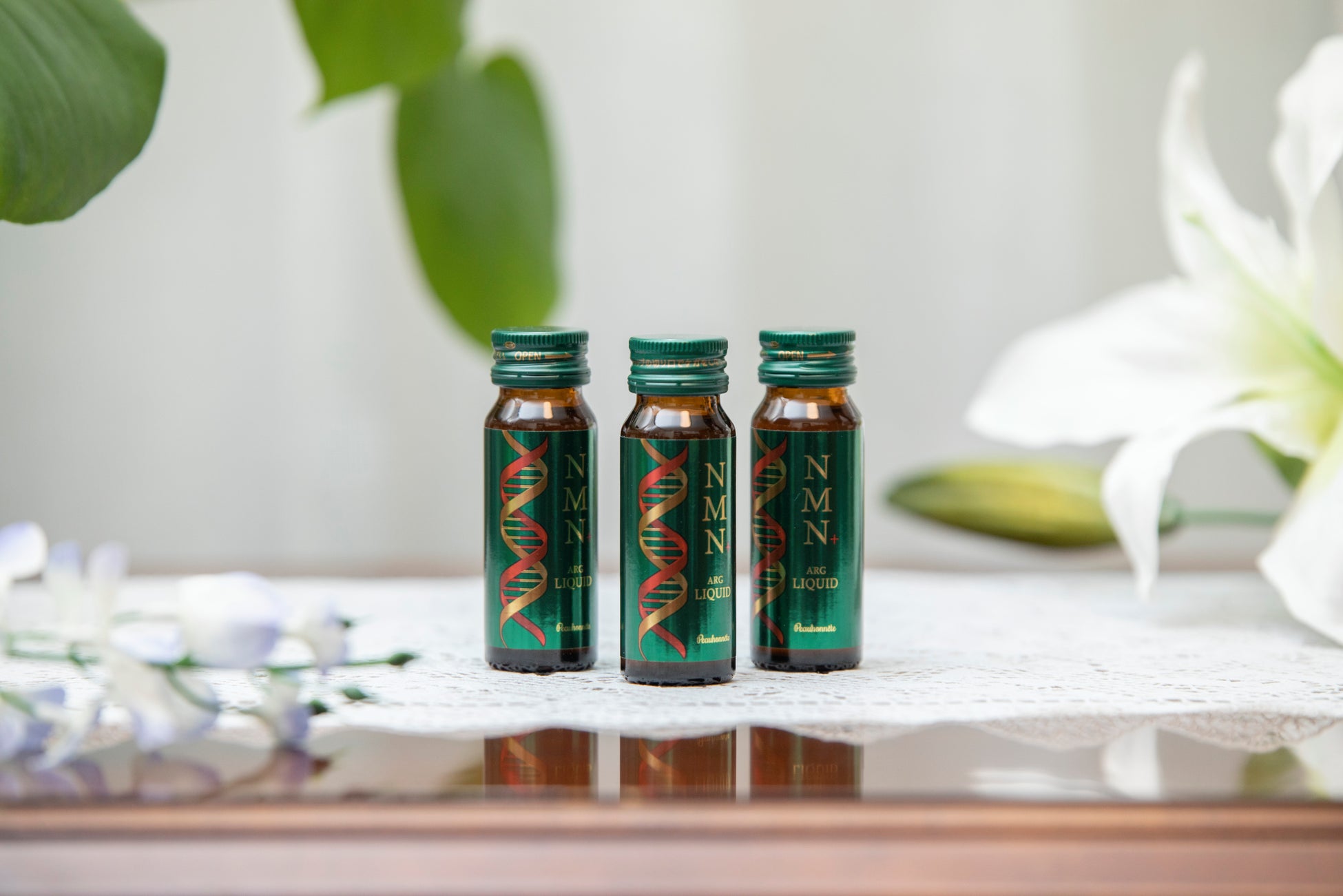 緑のラベルが美しい「NMN ARG リキッド」は話題のアクティブ成分“NMN”のほかにL-アルギニン1000mgを配合し、さらに美容に特化されたドリンクだ。成長ホルモンの分泌を促す期待が見込まれるので、健康的な美しさを手に入れたい方はぜひチェックしてほしい。