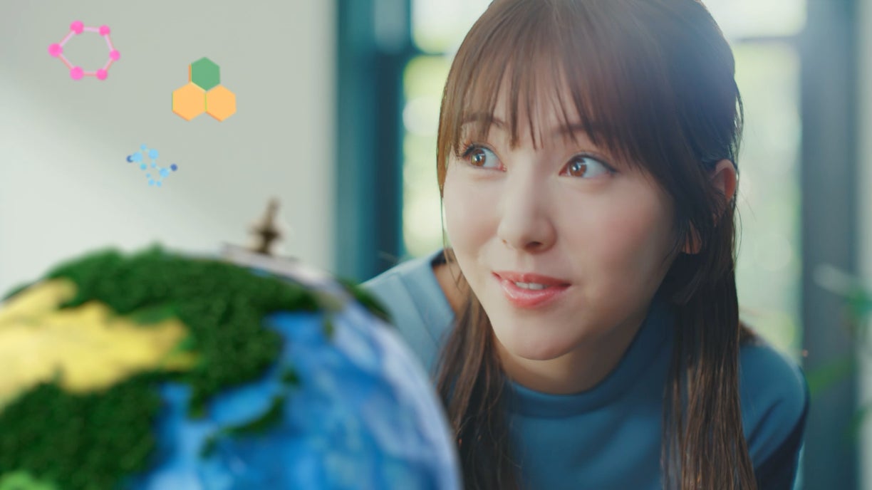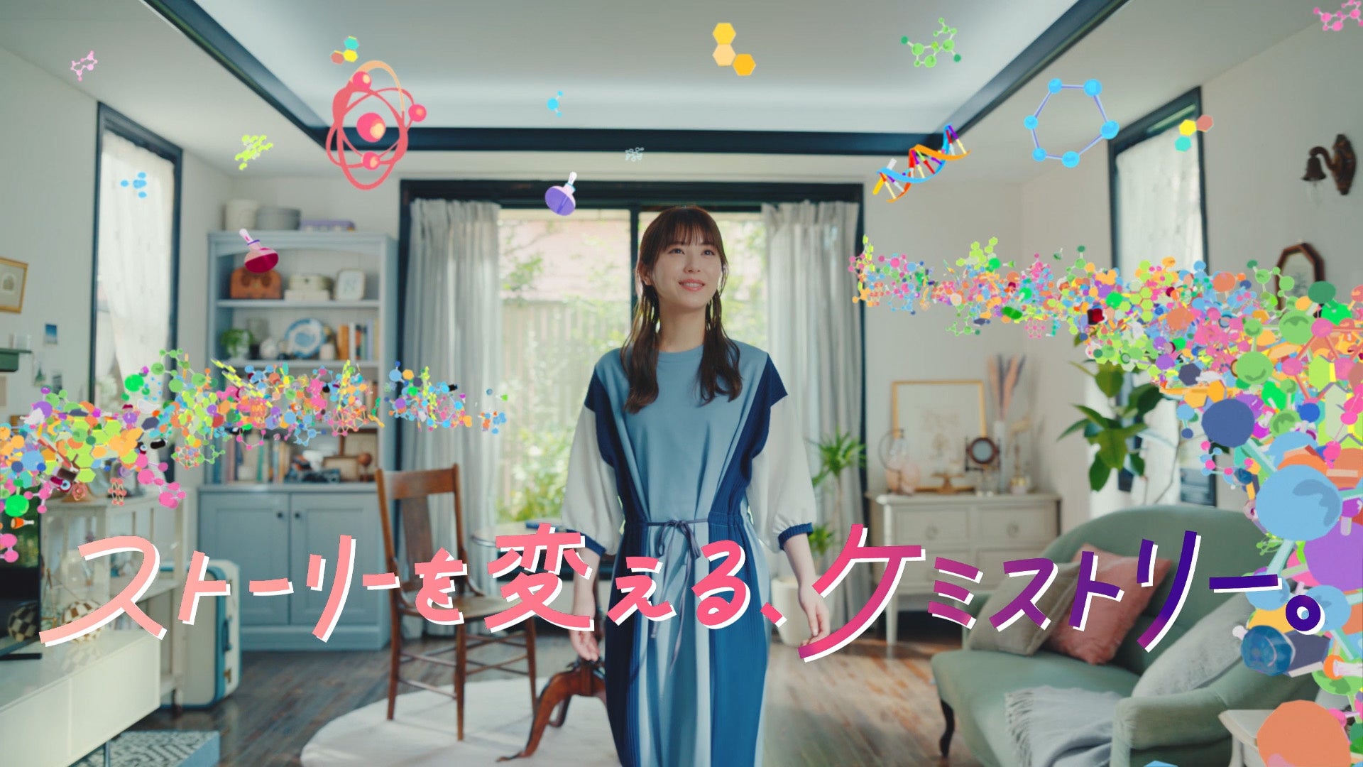 『ストーリーを変える、ケミストリー。』シリーズ第2弾となる本作は、化学がより良い未来への可能性を広げていくことをテーマに、カラフルな化学モチーフが日常の生活に寄り添う姿を描いています。次々と現れ、躍動感あふれる化学モチーフに浜辺さんが驚く表情や地球の未来にワクワクする様子にもご注目ください。