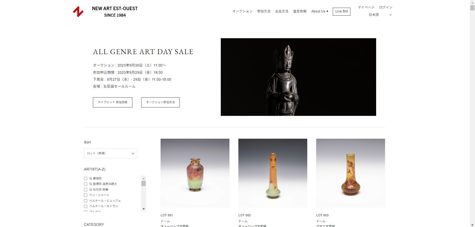 アジアで最も歴史あるオークションハウス、ニューアート・エストウェストが2023年秋のオークションを東京で開催。