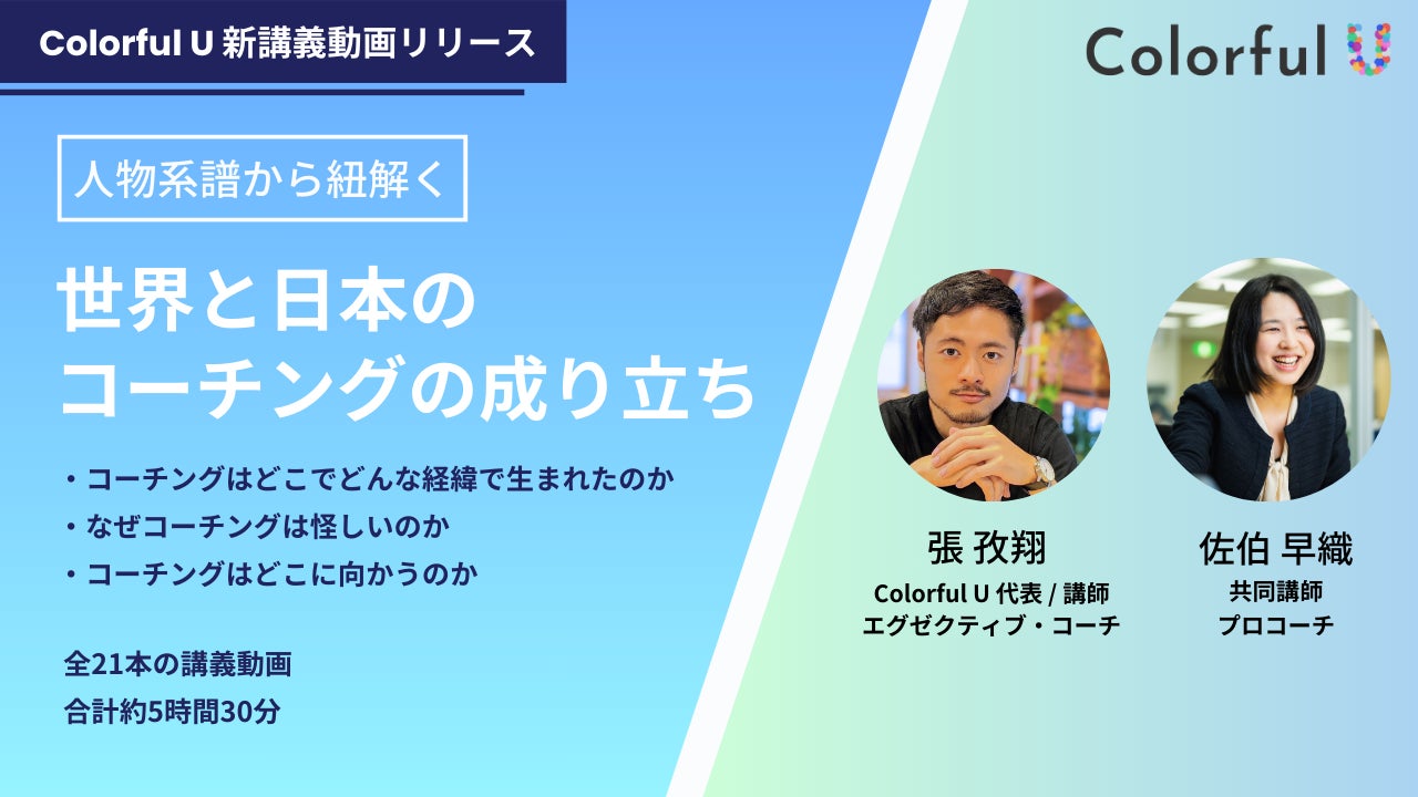コーチング学習サービスColorful Uは、世界と日本のコーチングの成り立ちを詳細に解説する新しい動画講義を発表しました。