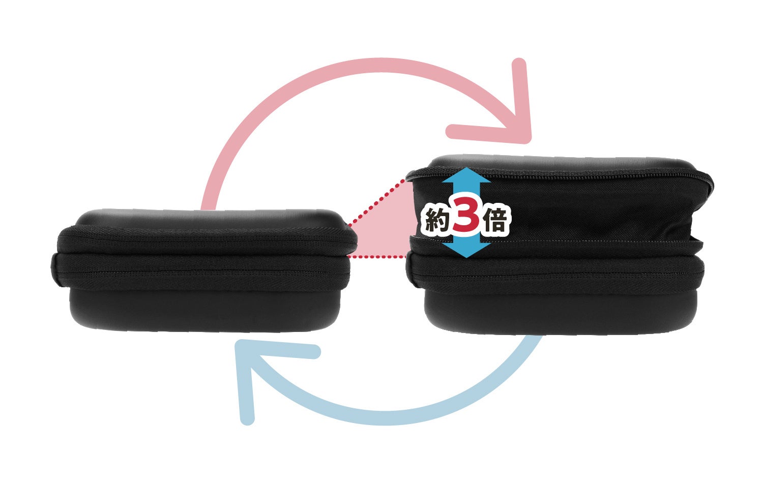 スリムにも大容量にも、シーンに合わせて2WAYで使用が可能。