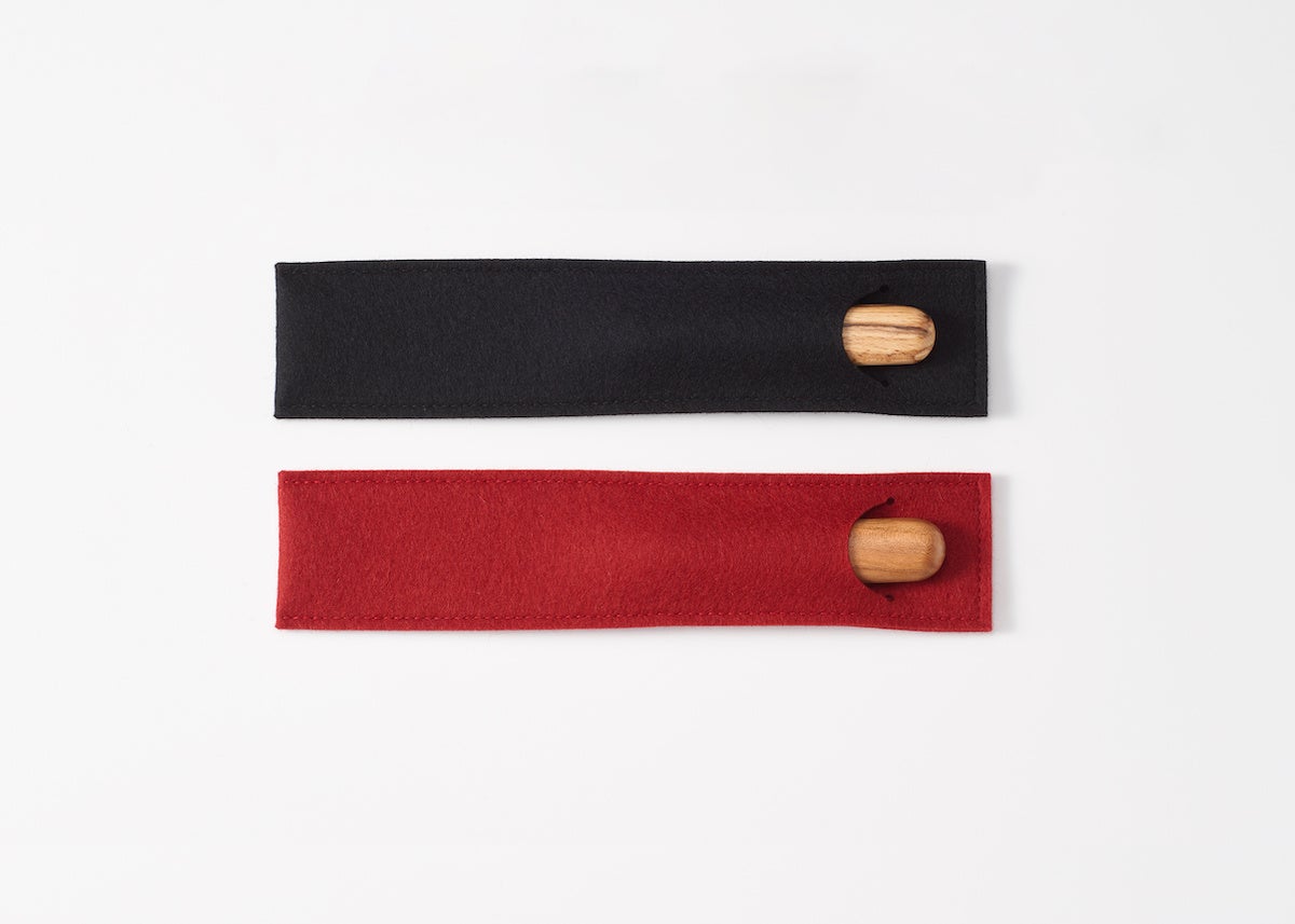 キャンプや登山などで活躍するアウトドアナイフとしても、「オールドジャーマンナイフ」は最適です。専用ケースはフェルト製で、3種類のカラーからお選びいただけます。先端が丸い形状のナイフのため、専用ケースに入れることで安心して外へ持ち運ぶことが可能です。薄くてかさばらず、キッチンにそのまま置いたり、気楽にバッグに入れたりすることができるようなシンプルなデザインです。
