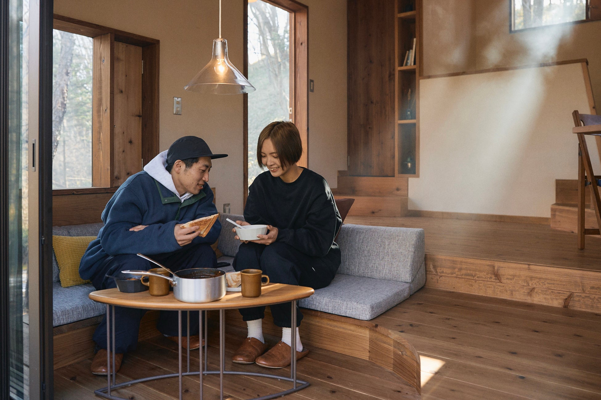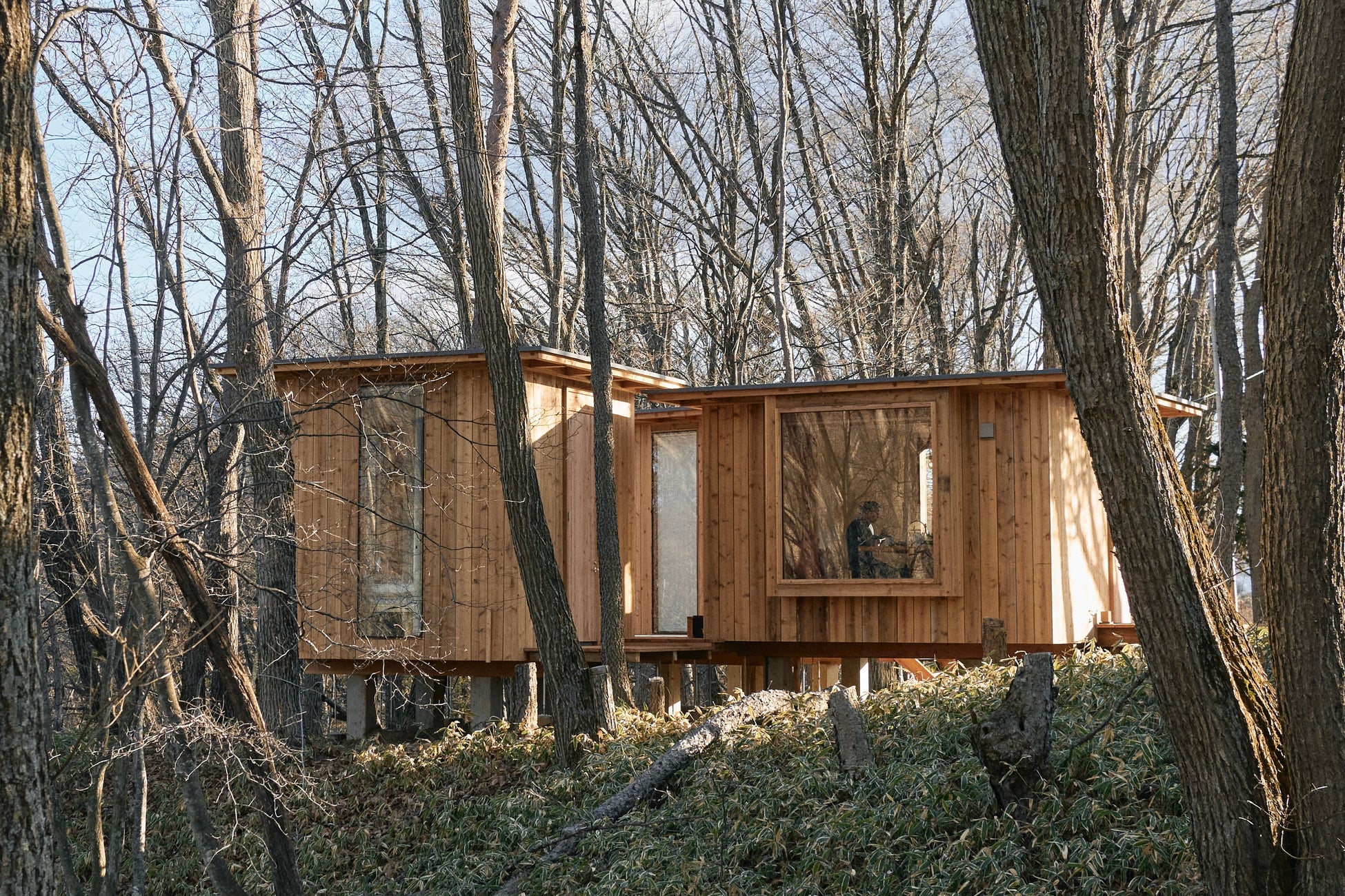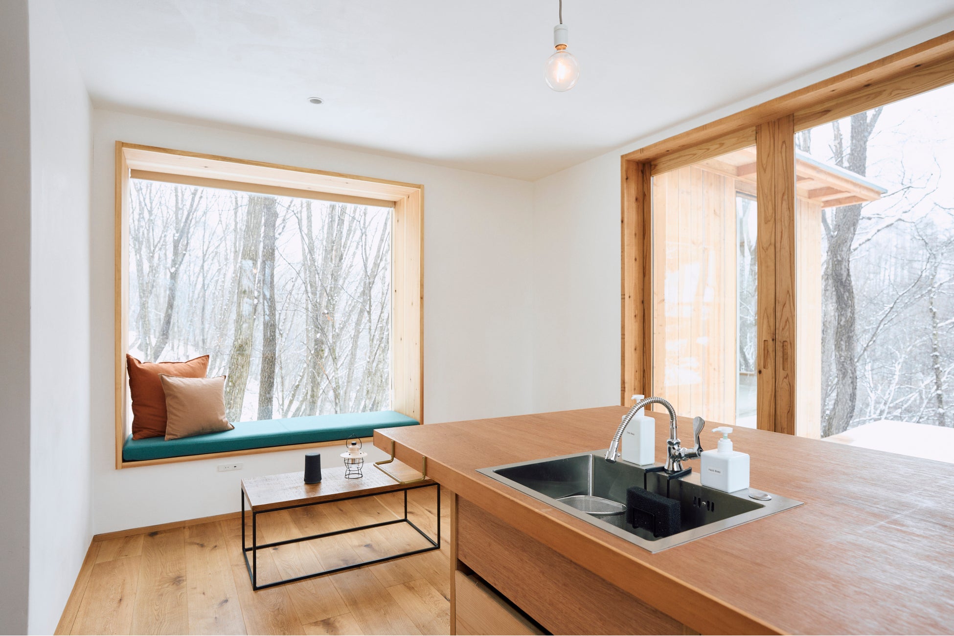 地形や風景に合わせて建てられたHutの窓は、青々とした木々や小鳥がさえずる川辺など、外の景色を美しく切り取ります。自然が織りなす風景や季節の移り変わりをお楽しみください。