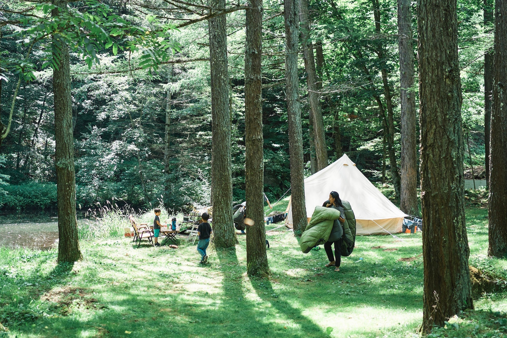 場所によって景色が違うのはもちろん、さまざまな楽しみ方ができます。広い土地を活かし自由な雰囲気で楽しめるよう、混雑時を除き、全面フリーサイトとしてご利用いただけます。