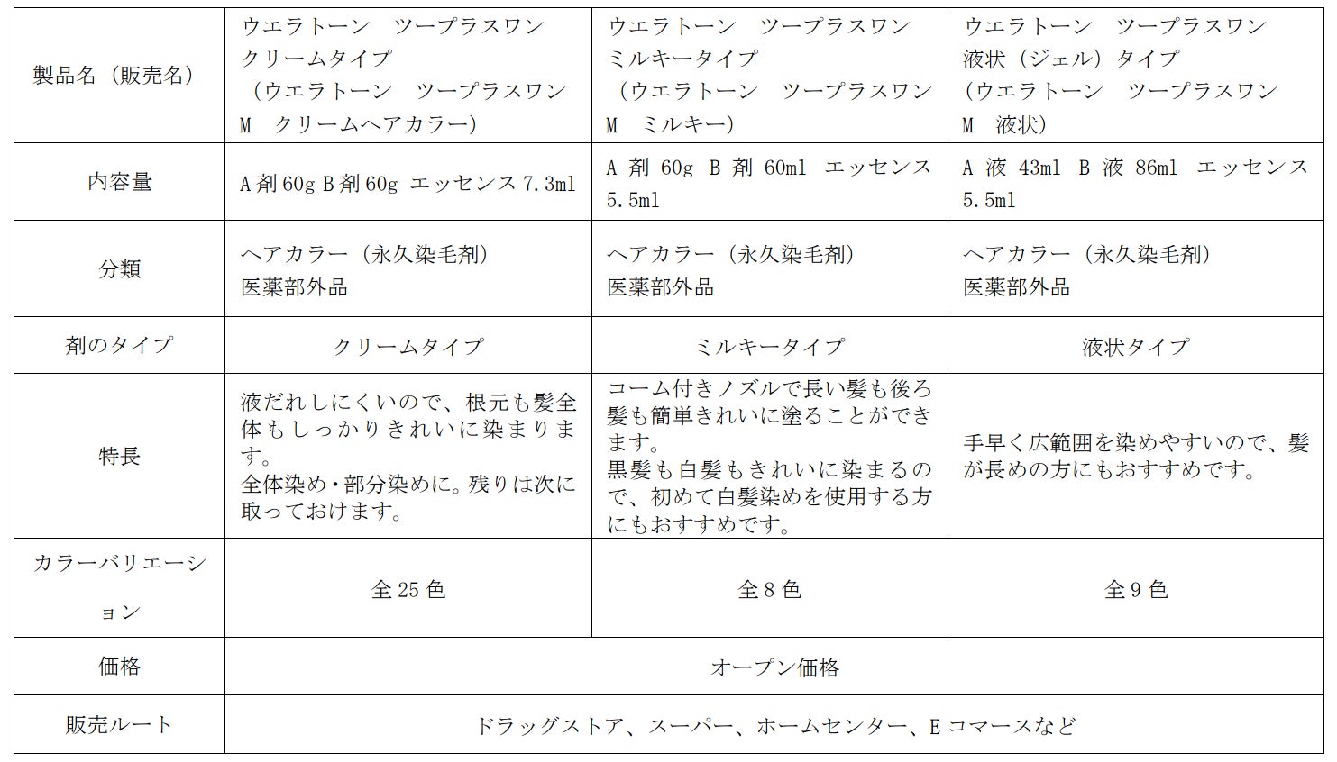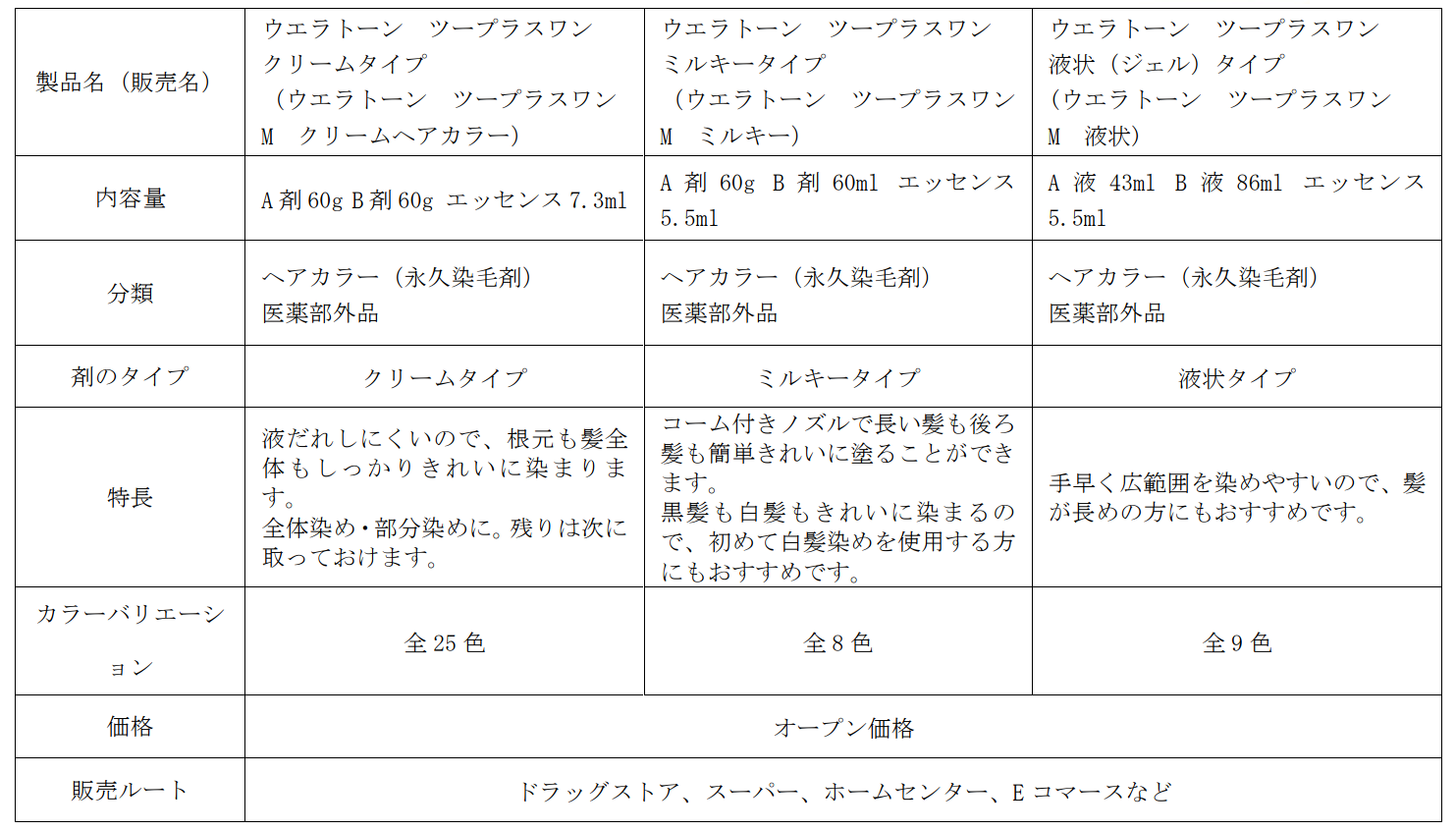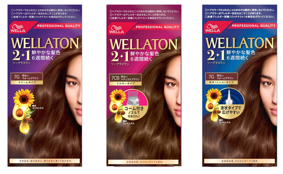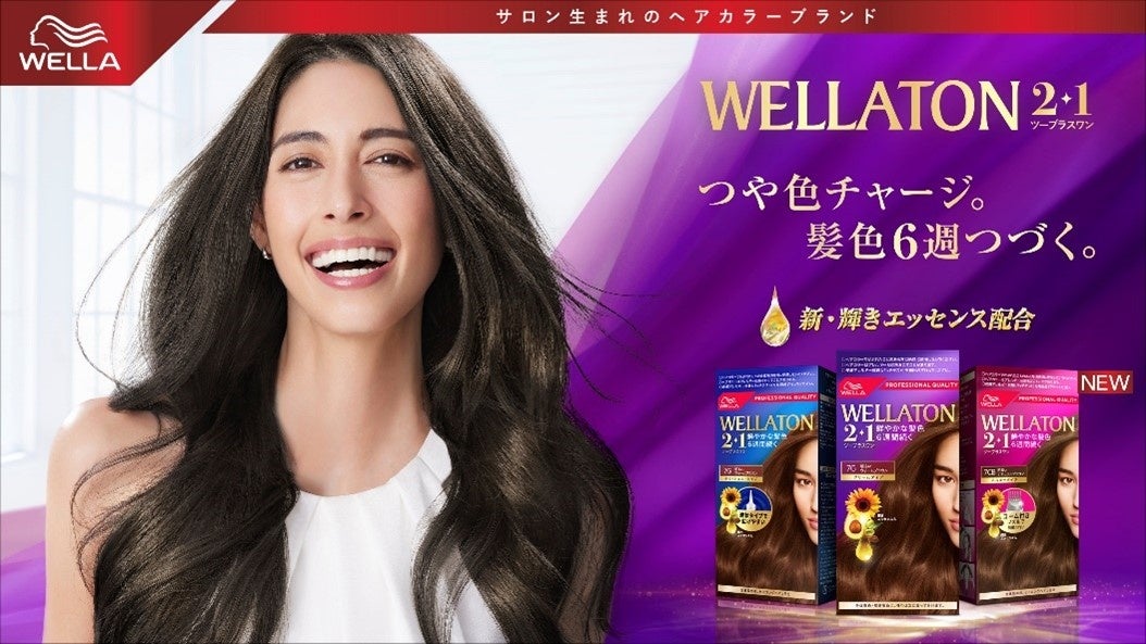 「ウエラトーン 2+1 シリーズ」は、自然な色とつや、豊富な25種類の色展開によって女性の魅力を引き出すヘアカラーで、色持ちが6週間*1持続するところが特長です。3つのトリートメント成分にオリーブオイルが加わった、99%植物由来の新しい輝きエッセンス*2と新たなパッケージで、23年4月からリニューアルいたしました。