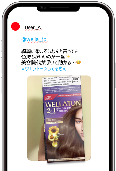 2. @wella_jpをメンションし、#ウエラトーンしてみたいをつけて<使いたい理由や期待>を投稿したら応募完了。