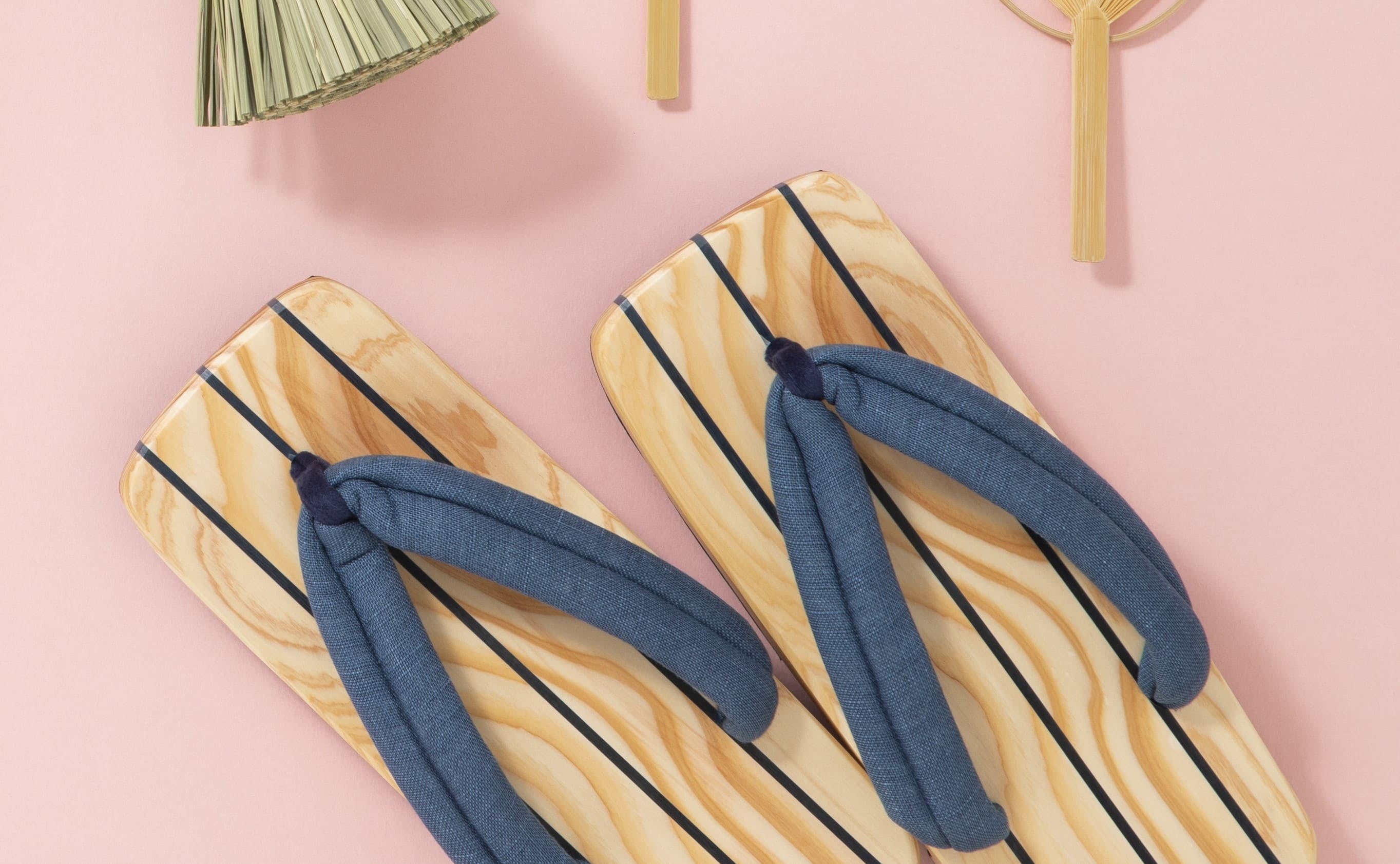 宴に出かけるときはいつもより少しだけおしゃれしたくなる。そんな場面をイメージした、華やかなアクセサリーや洋服をご用意。本野はきもの工業の下駄は、長時間履いても疲れない機能性の高さとスタイリッシュなデザインで夏の足元を華やかに彩ります。