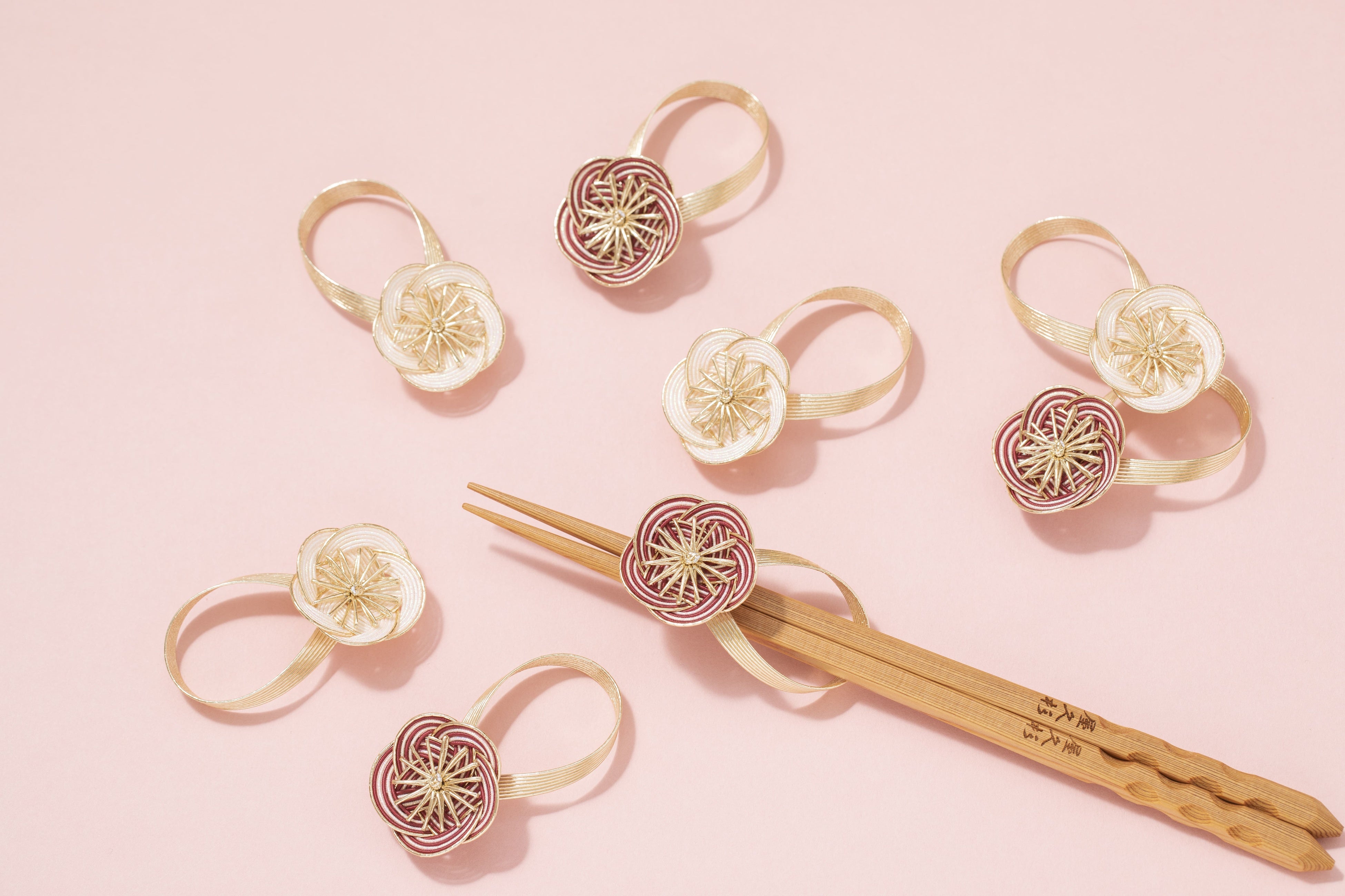 宴席のごはんに合わせた調味料や、食卓に欠かせないカトラリーをご用意しております。有限会社ながさわ結納店に別注した水引の箸置きは、アナザー・ジャパン限定色です。
