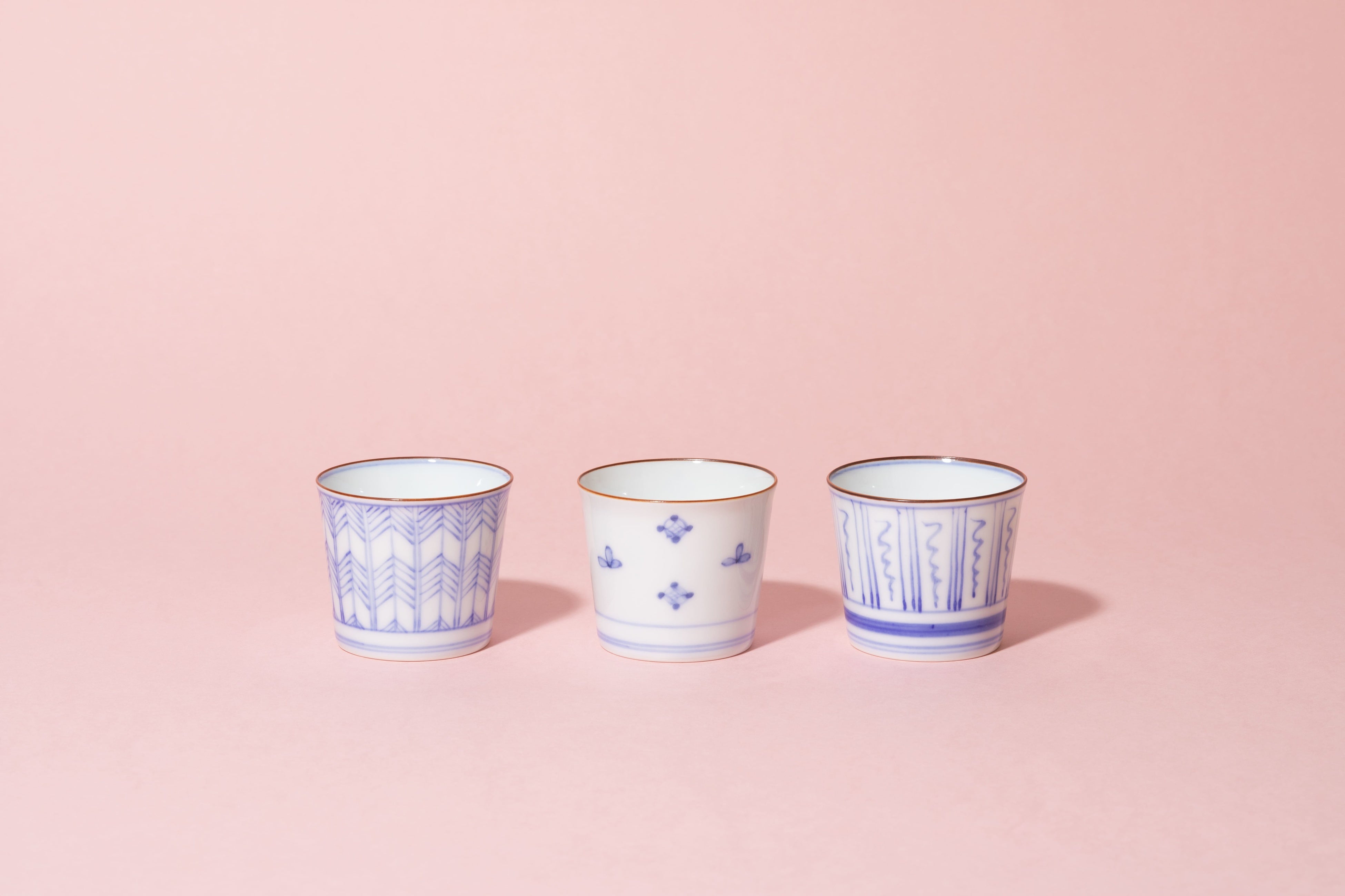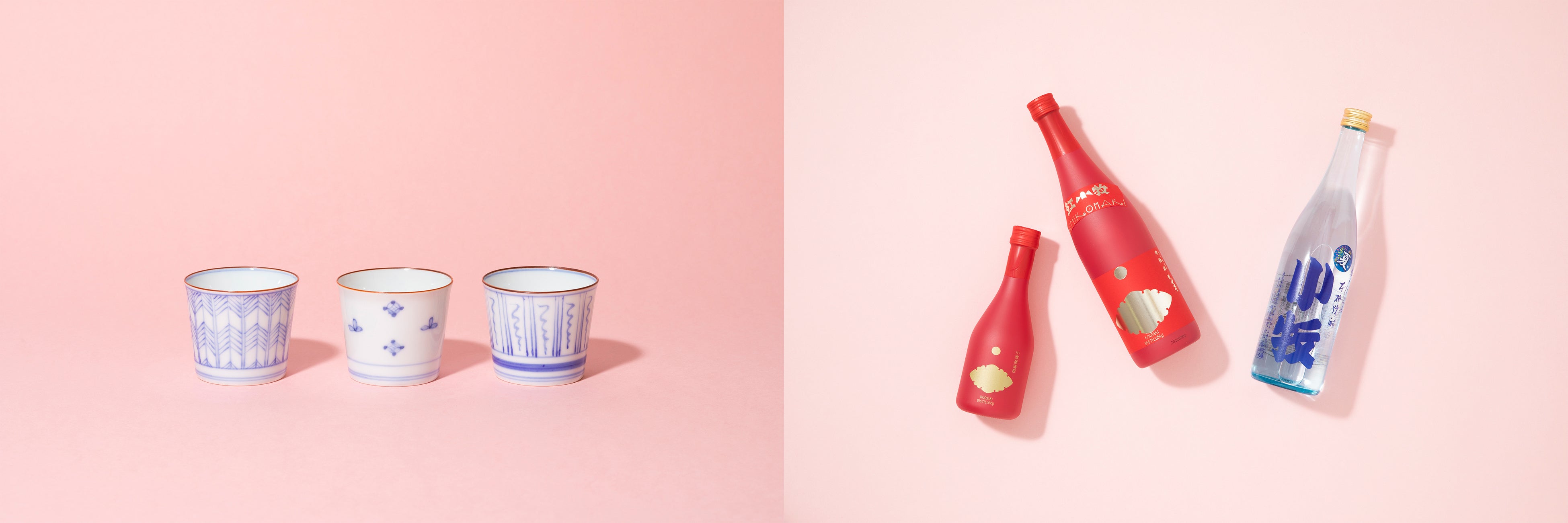 宴のメインイベントとも言うべき乾杯。各地のおいしいお酒はもちろん、おつまみや酒器もご用意しております。有田焼窯元・Tsukasa Designの猪口は、定番柄に加え、九州チームの学生がデザインに参加したオリジナル商品も開発中です。(画像は定番柄)