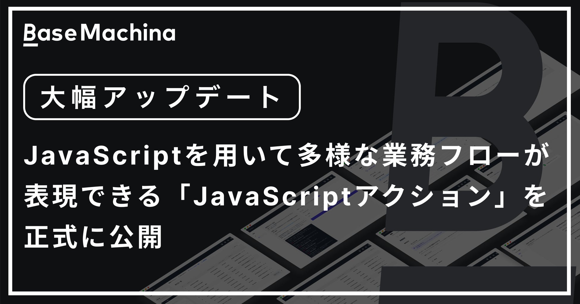 Webサービスの管理画面をはじめとした社内システムをローコードで開発できる「ベースマキナ」を提供する株式会社ベースマキナは、JavaScriptを用いて多様な業務フローが表現できる「JavaScriptアクション」を正式に公開しました。
