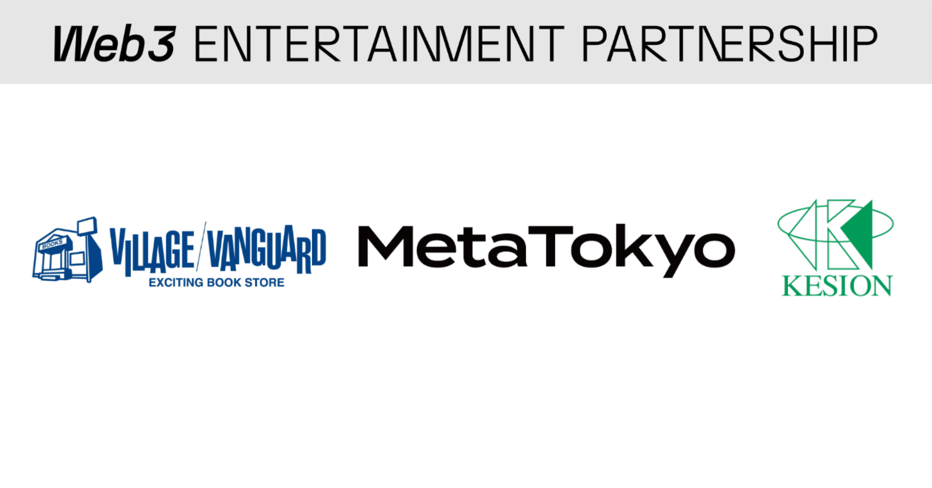 MetaTokyo株式会社(代表取締役CEO 鈴木 貴歩)は、株式会社ヴィレッジヴァンガードコーポレーション(代表取締役社長 白川 篤典)、株式会社ケシオン(代表取締役社長 高山 健一)の各社と、Web3から産まれる次世代IP、プロジェクト、そしてそれを産み出すクリエイターと連携し、バーチャルとリアルにまたがる新たなエンタテインメントをプロデュースする「Web3エンタテインメント・パートナーシップ」を締結し、Web3時代のエンタテインメント事業を行うことを発表します。