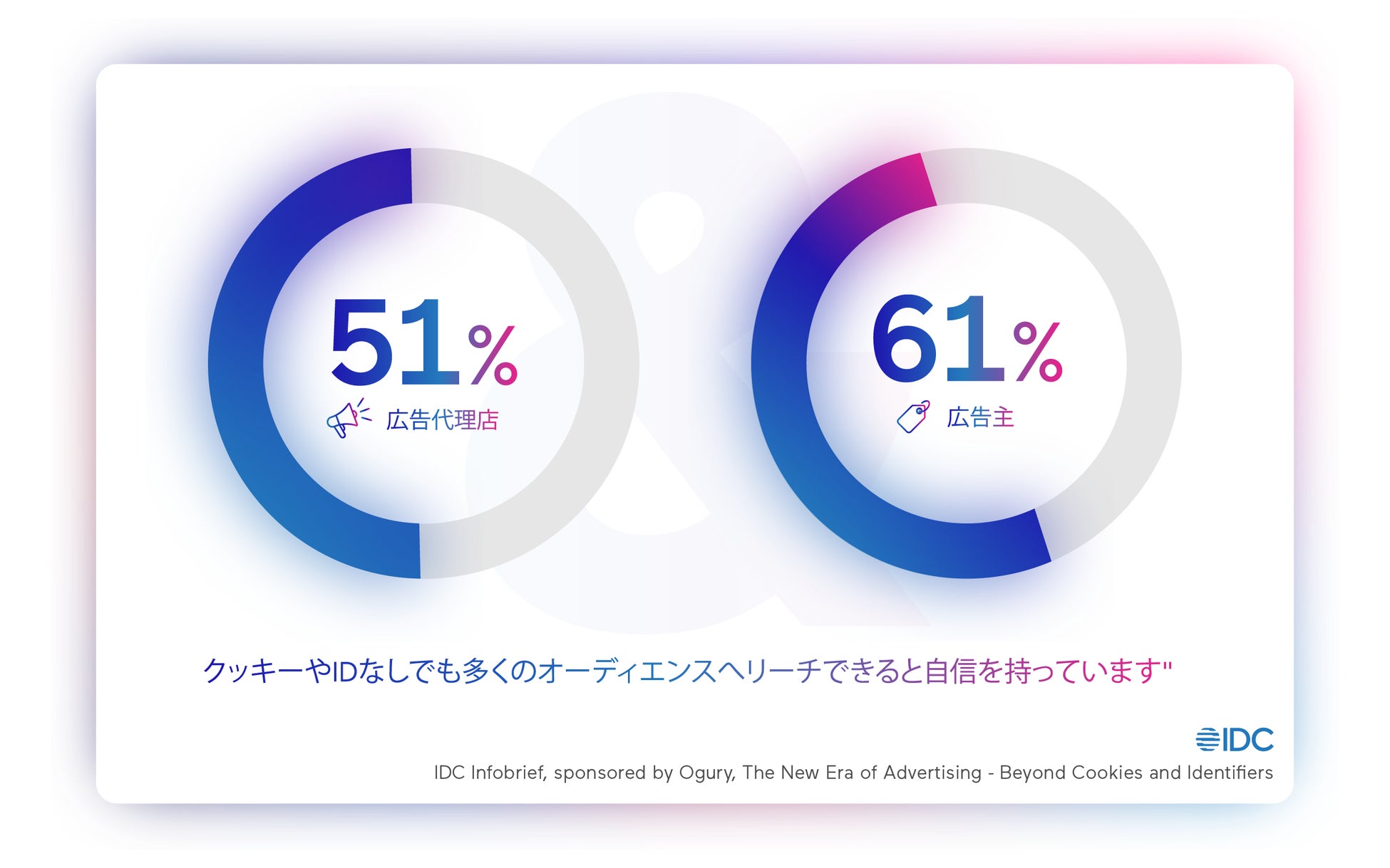2023年5月11日 - クッキーレス・IDレスに対応したペルソナ・ターゲティング広告をグローバルに展開するOgury(Ogury ltd.、日本法人 : Ogury Japan株式会社)は本日、IT市場調査会社のIDC(International Data Corporation) に委託し、1,000名の主要な広告主と広告会社の役職者を対象とした”クッキーレス社会におけるデジタル広告の未来” に関する調査を行いました。その結果、回答した役職者の大部分 (60%) は、ユーザーを追跡する機能がまもなく時代遅れになると考えていますが、そのうち40%は広告IDやクッキーによらないターゲティングテクノロジーについて詳しくないと回答しました。