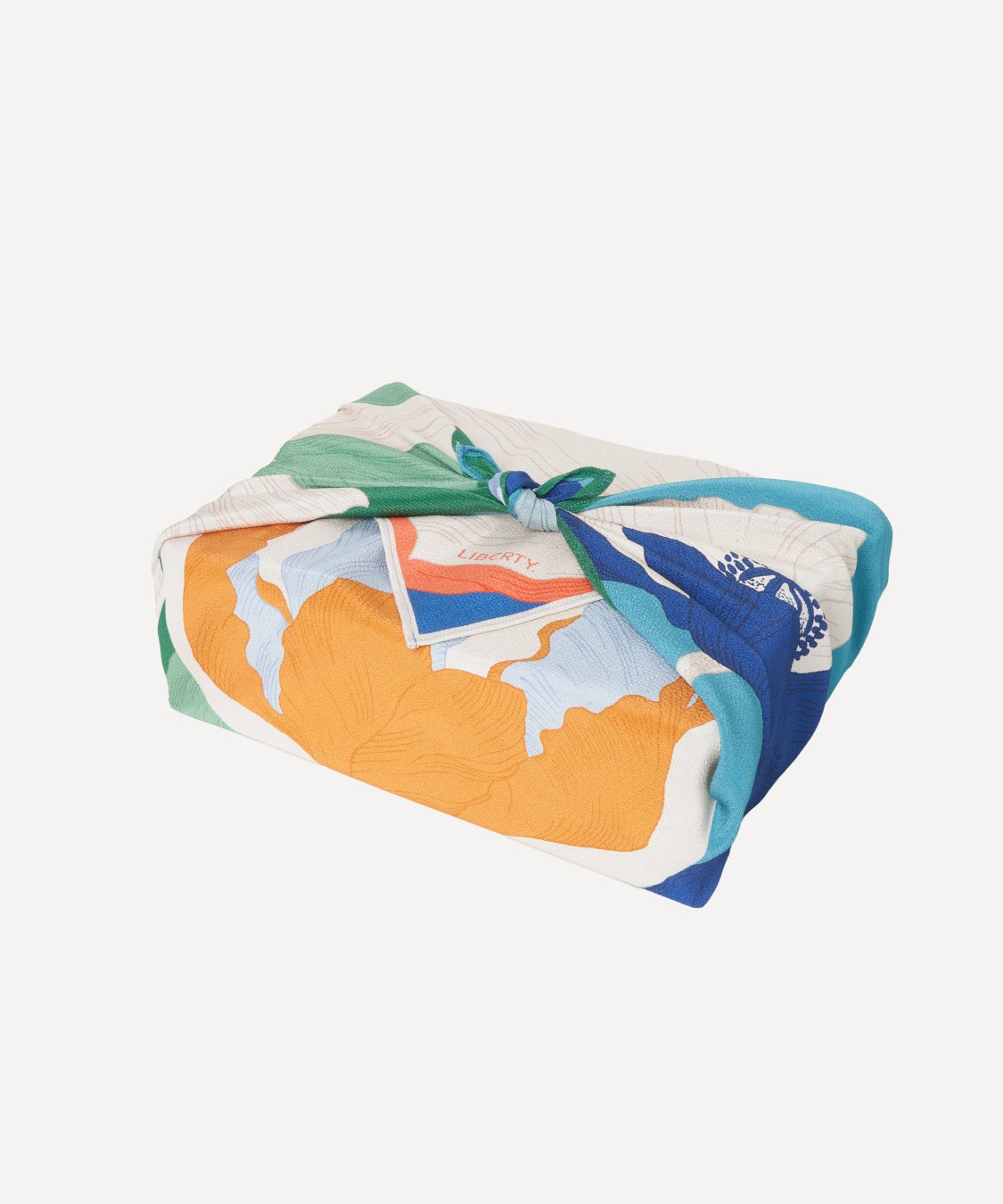 本コレクションでは、リバティを象徴するプリントと、丸仙が誇る丹後ちりめんの技術を融合させた、数量限定の風呂敷を展開。リバティの芸術性を称えるとともに、創業者、アーサー・ラセンビィ・リバティ卿の大西洋を越えた旅路へオマージュを捧げる作品です。