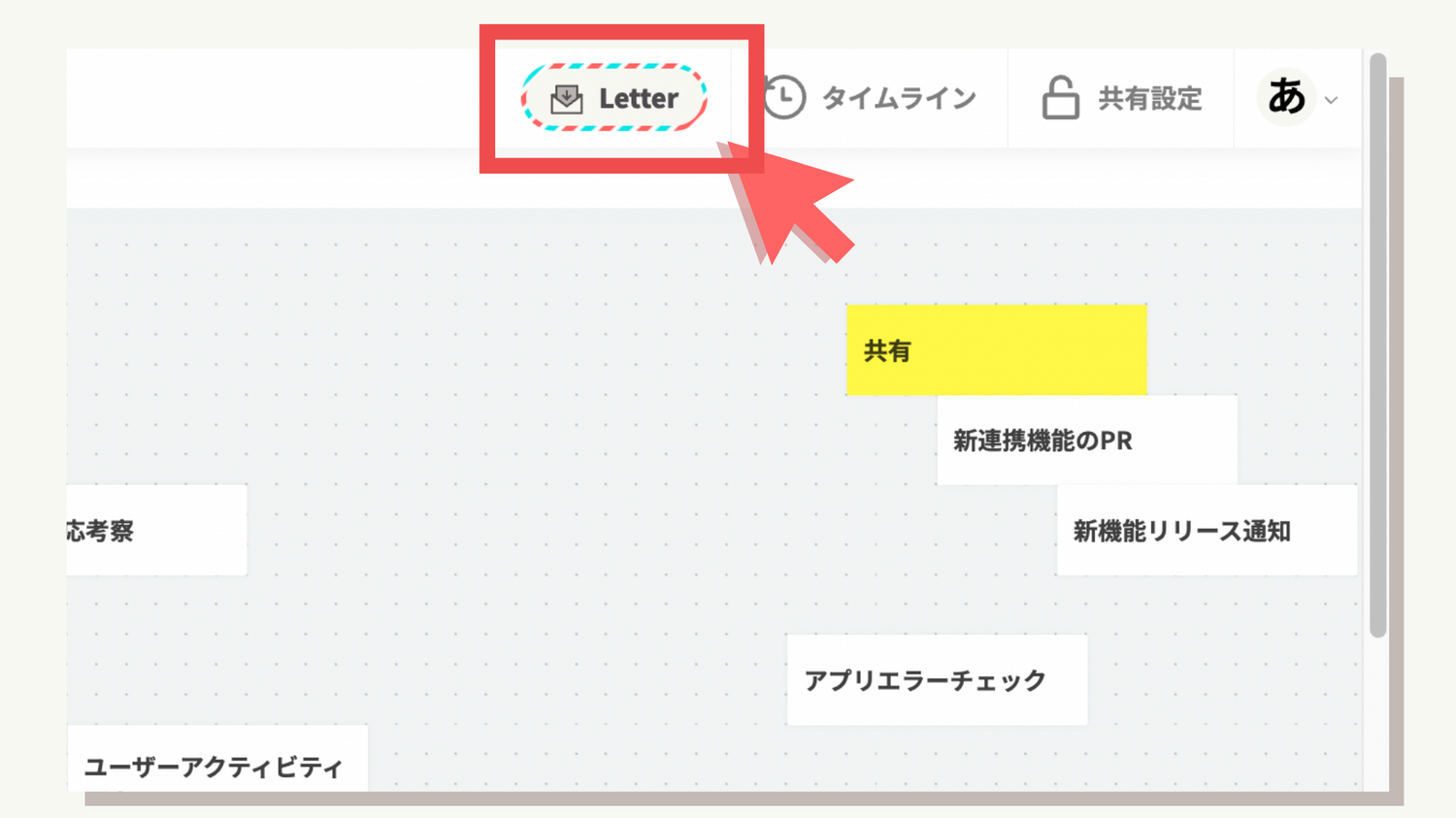 新しく設置された、ボード右上の " letter " ボタンをクリックしましょう。